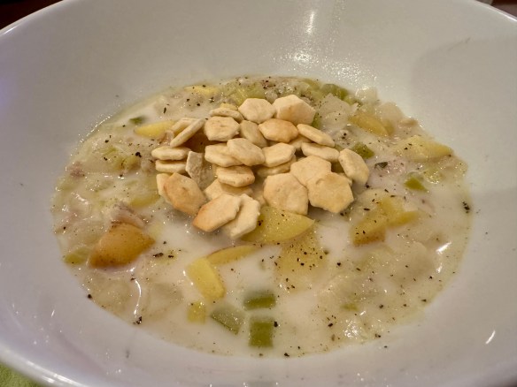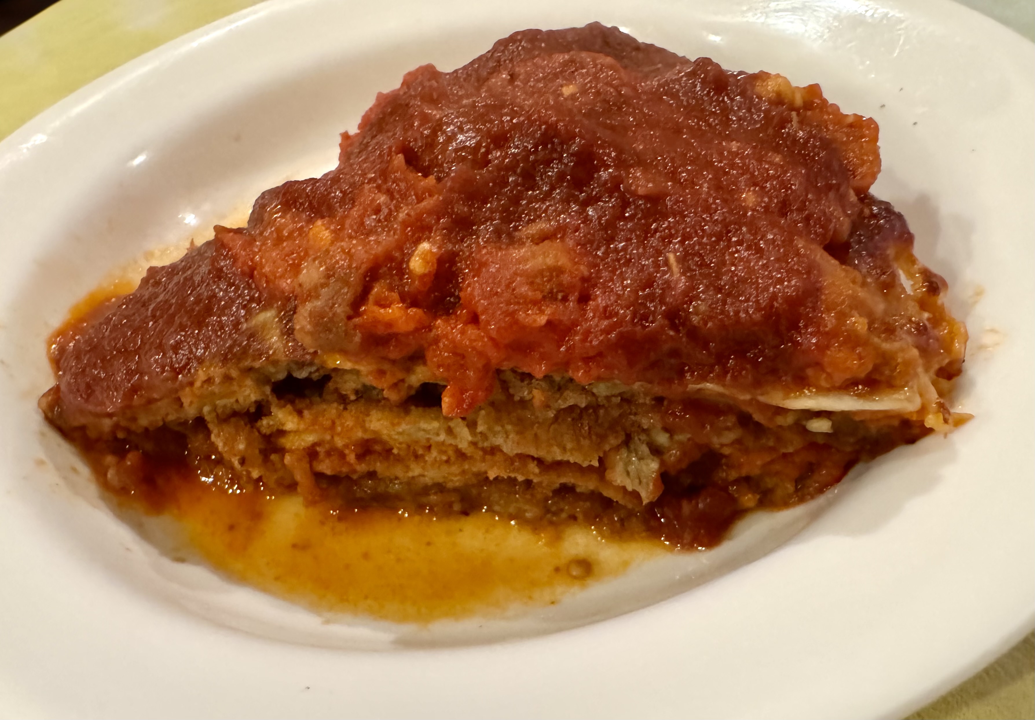 On Thursday the ceiling was finished by 6PM but since we thought it was going to take longer we were not prepared for making anything elaborate. We settled on our second tray of Rao’s eggplant Parmesan. Our first tray had been plagued with soggy breading so we made the second without its plastic film, took it out of its plastic tray to a glass dish, and cooked it in the oven. For the first 45 minutes it was covered with aluminum foil and then we took it off for the last 15 minutes. Since it was not done we raised the temperature to 400F and cooked it for another 15 minutes. Ultimately we added more sauce and stuck it in microwave. Bottom line? We are not buying it again.
