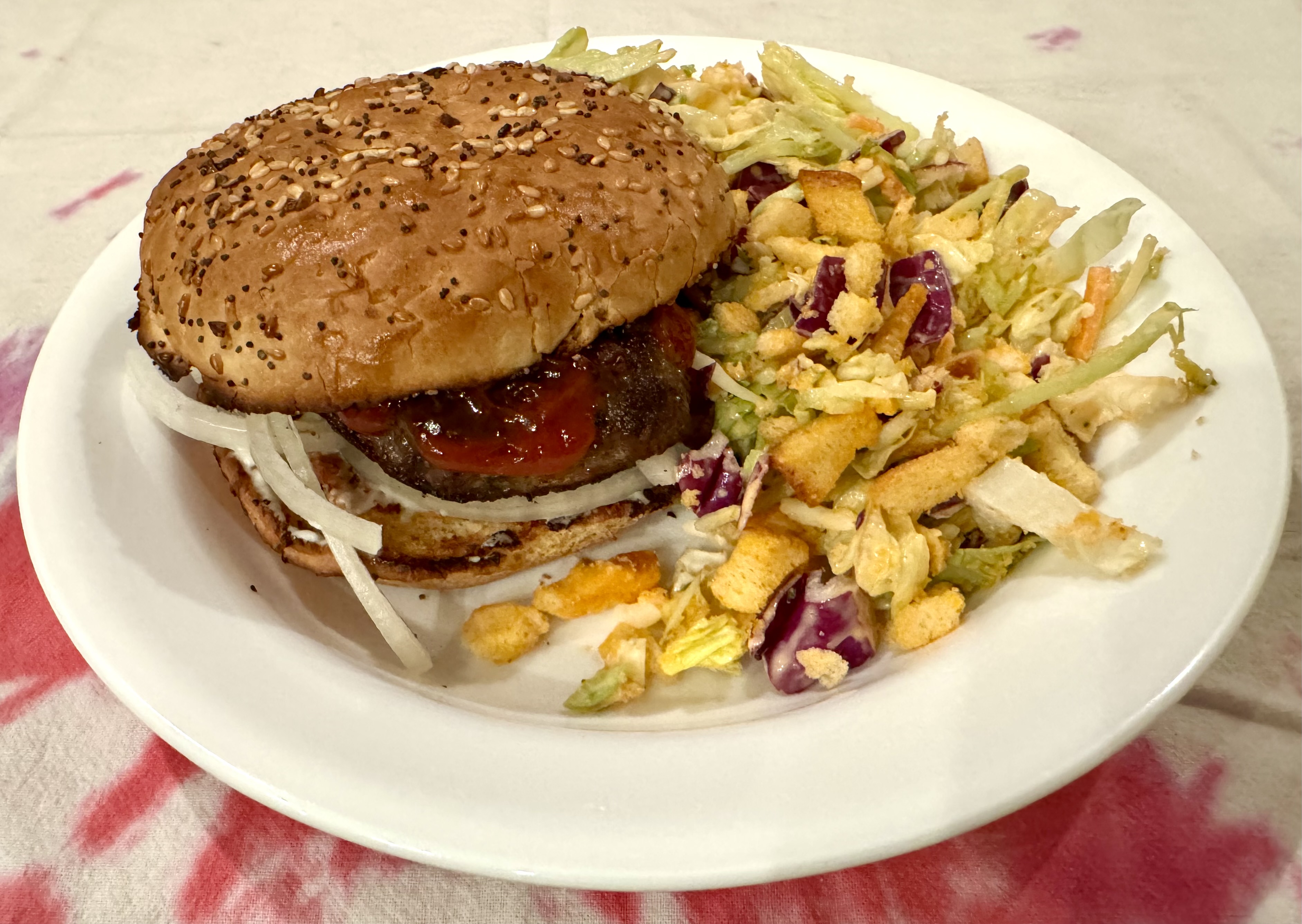 John did a superlative cook on the burgers and I made the salad. Great all-American dinner! 👍