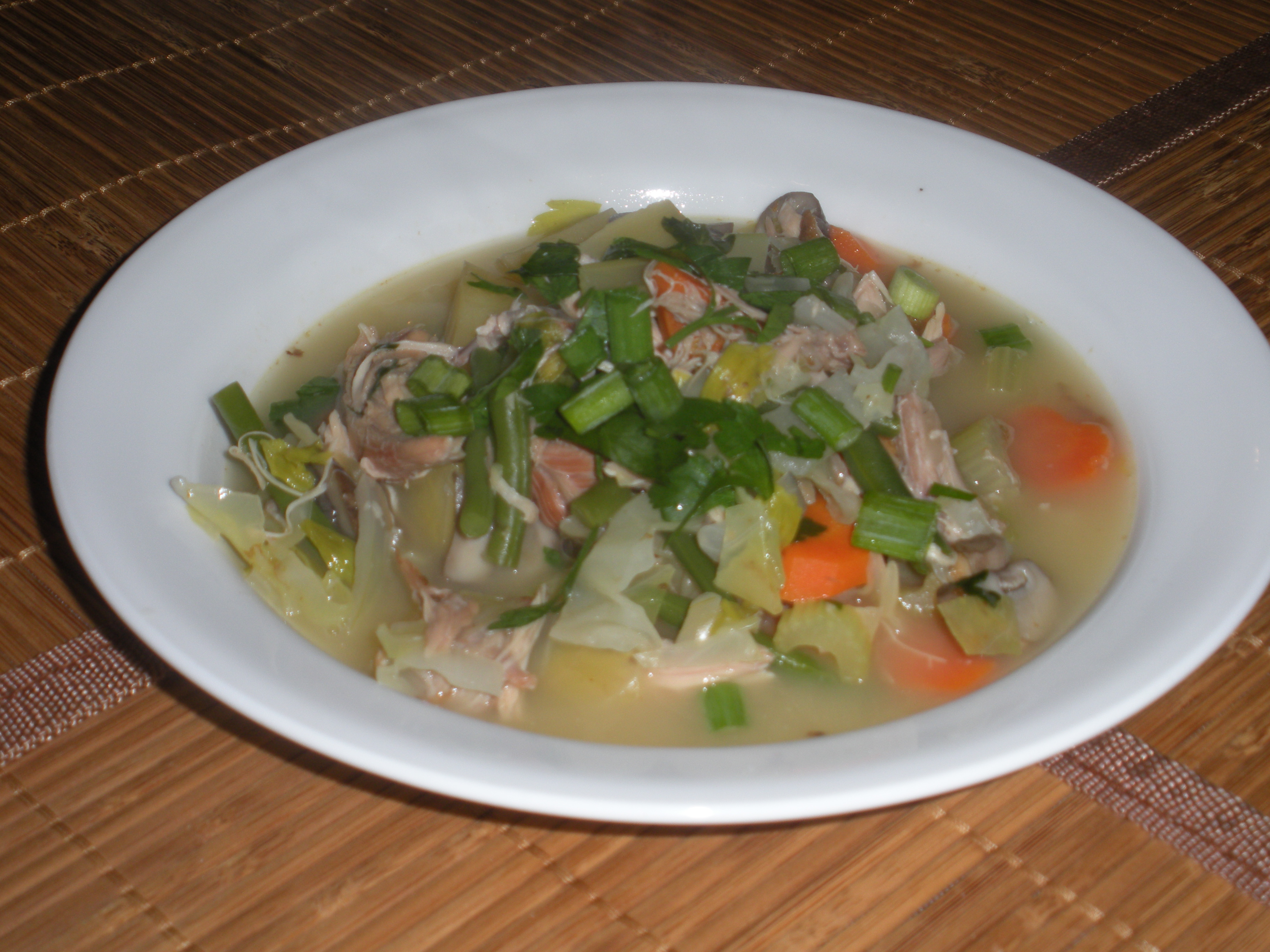 John made turkey gravy on Wednesday in preparation for Thanksgiving. He used turkey necks, wings, and giblets. I cut up a bunch of vegetables Wednesday in preparation for Thanksgiving. I cut up carrots, onions, celery, mushrooms, parsley and rutabagas. He had leftover meat. I cut up a few extra vegetables. We added stock. Voila, turkey soup before we are sick of eating turkey.