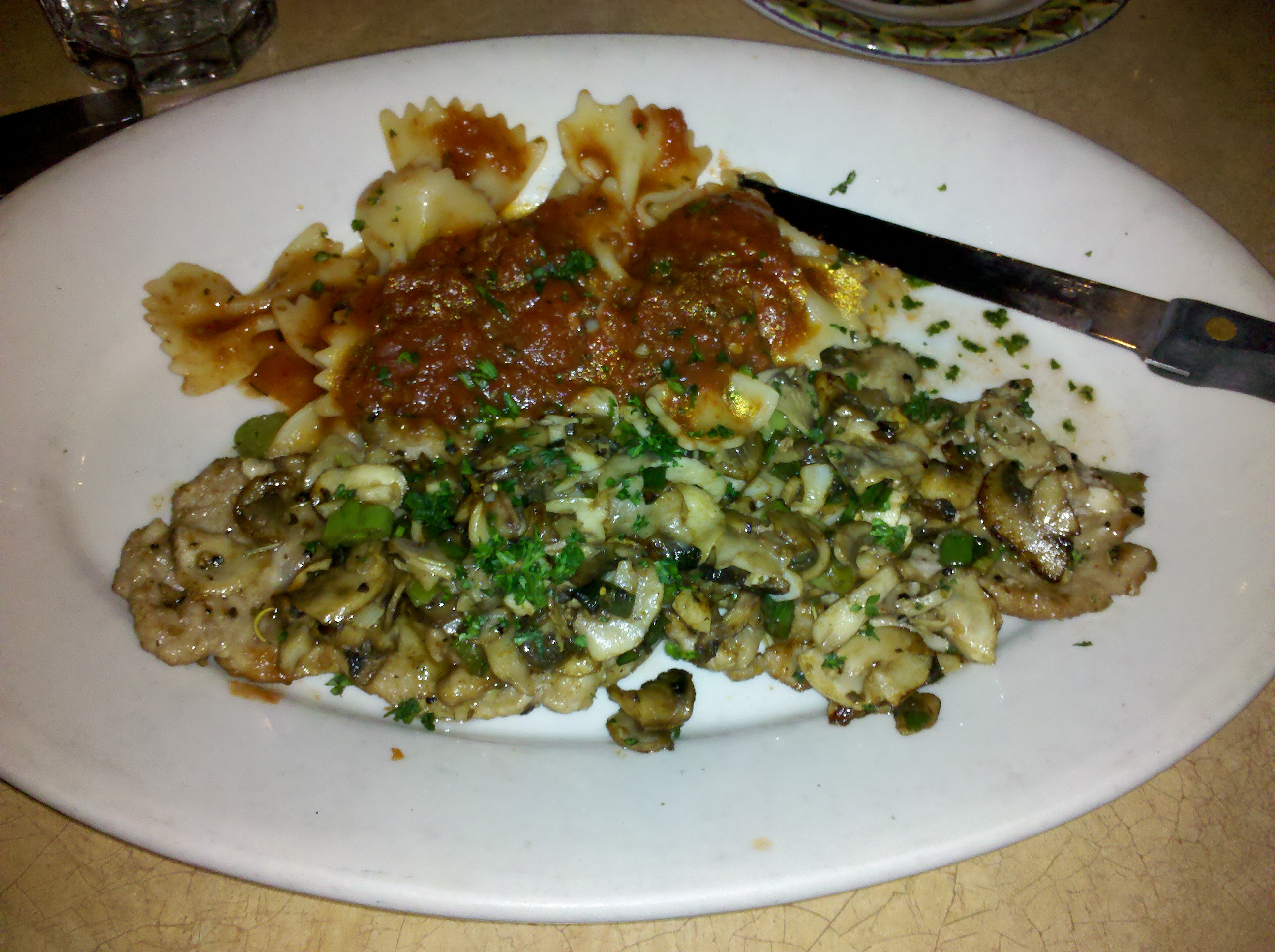 When you are on a diet it is hard to find a dinner that everyone will like. Sometimes you just figure that it would be easier to eat out. The other night when Jonathan was visiting, it seemed like a good time to do just that. There is a little Italian restaurant in the Lucky’s shopping center nearby. It is quite unassuming and is a family owned and run place. Since Jon likes Italian food, I figured it would be easier on both of us to eat there.
