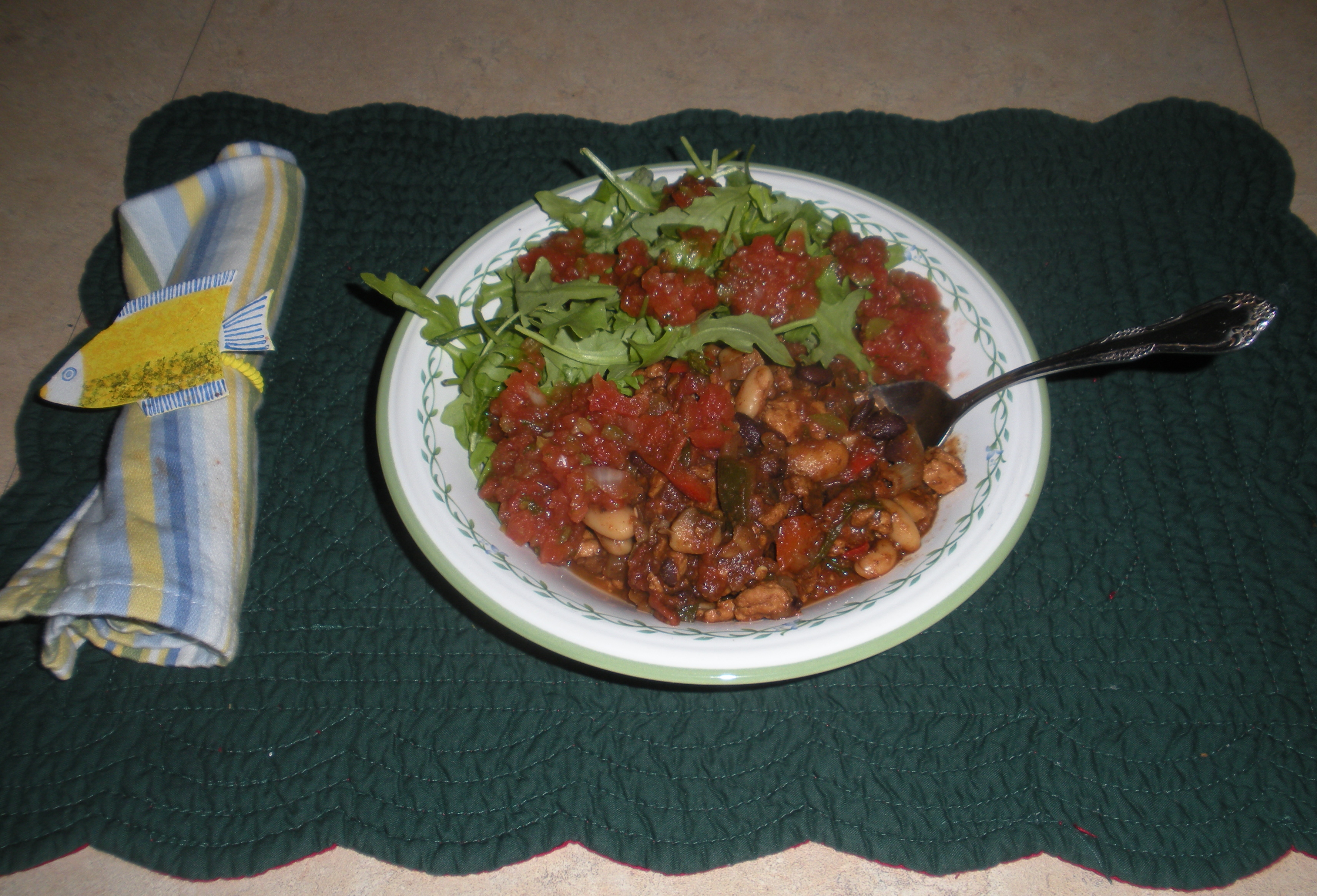 I seem to be in repeat mode this week as I struggle to get back on track diet-wise. Making turkey chili is kind of time-consuming but at the end you have a giant pot of food that just needs to be reheated. The recipe for this dish is here. I was going to make this in the slow cooker but the one we have in Marco was manufactured in the dark ages. So the pot is very small and the ceramic insert is not removable. I’ve made turkey chili on the stovetop, in the oven and in the slow cooker and it all works. The ground turkey available was only the very lean type and was less tasty than the higher fat version. Get the higher fat version if possible. Last night after playing tennis until almost 9 PM, it was nice to come home to a dinner that only needed to be reheated.