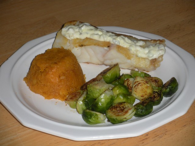 Wednesday found us back at Paradise Seafood. This time we got grouper. It is the iconic fish of Marco Island. I think every restaurant here must have it on its menu. John sauteed the grouper in a little butter and finished it in the oven. In the meantime I roasted the butternut squash and mashed it up with some salt, pepper, cinnamon (we have no nutmeg) and chipotle powder. Chipotle powder is our new secret ingredient. It gives everything a smoky heat. I made my Incredibly Yummy Brussels Sprouts but had to omit the sherry since we didn’t have any. The came out tasting pretty good anyway. We finished the tartar sauce that I made on Monday. This has been an awesome food week so far.