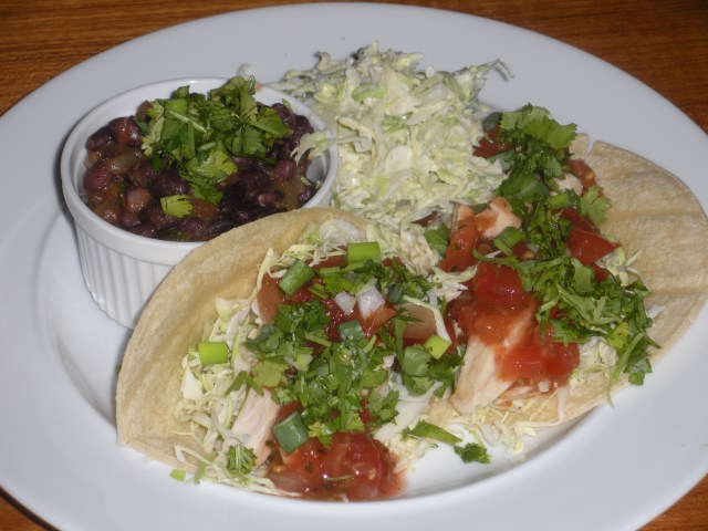 As we are leaving on Wednesday for a trip to Germany, Austria and the Czech Republic, we are in eat down mode. The chicken tacos for Chicken Monday were pre-cooked slices. Pre-cooked chicken is hard to rewarm without making it quite dry. But the rest of the taco was good, the beans were very good and the coleslaw which was made with the yogurt crema made a nice change from a regular salad.