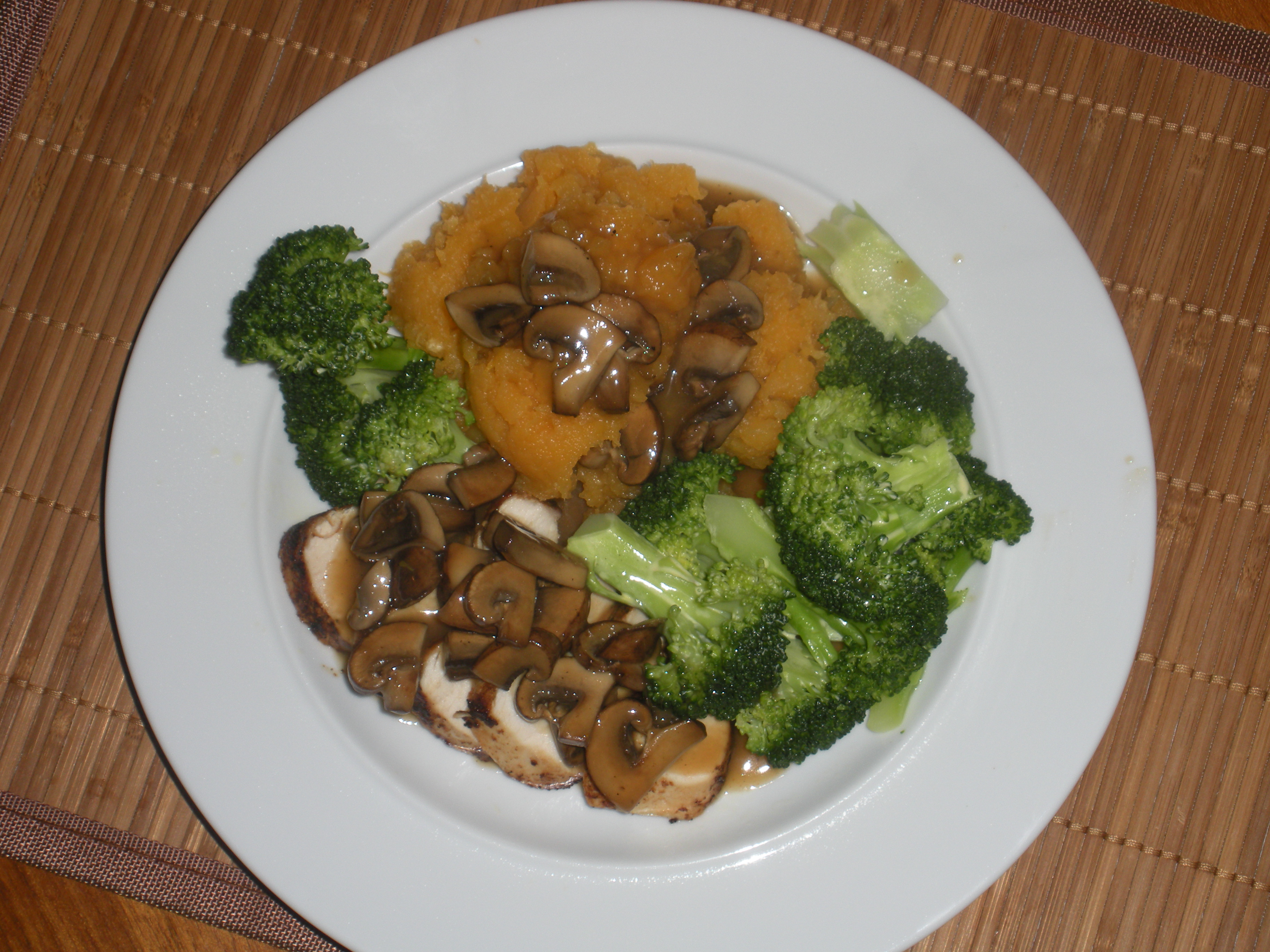 It was such a relief to come back to Chicken Monday. We had the standard meal with 3 ounces of meat, low calorie gravy from a packet with some sauteed mushrooms (sauteed in olive oil cooking spray), rutabagas made in the pressure cooker, and broccoli. After all the heavy food that I have eaten, this dinner seemed just right.