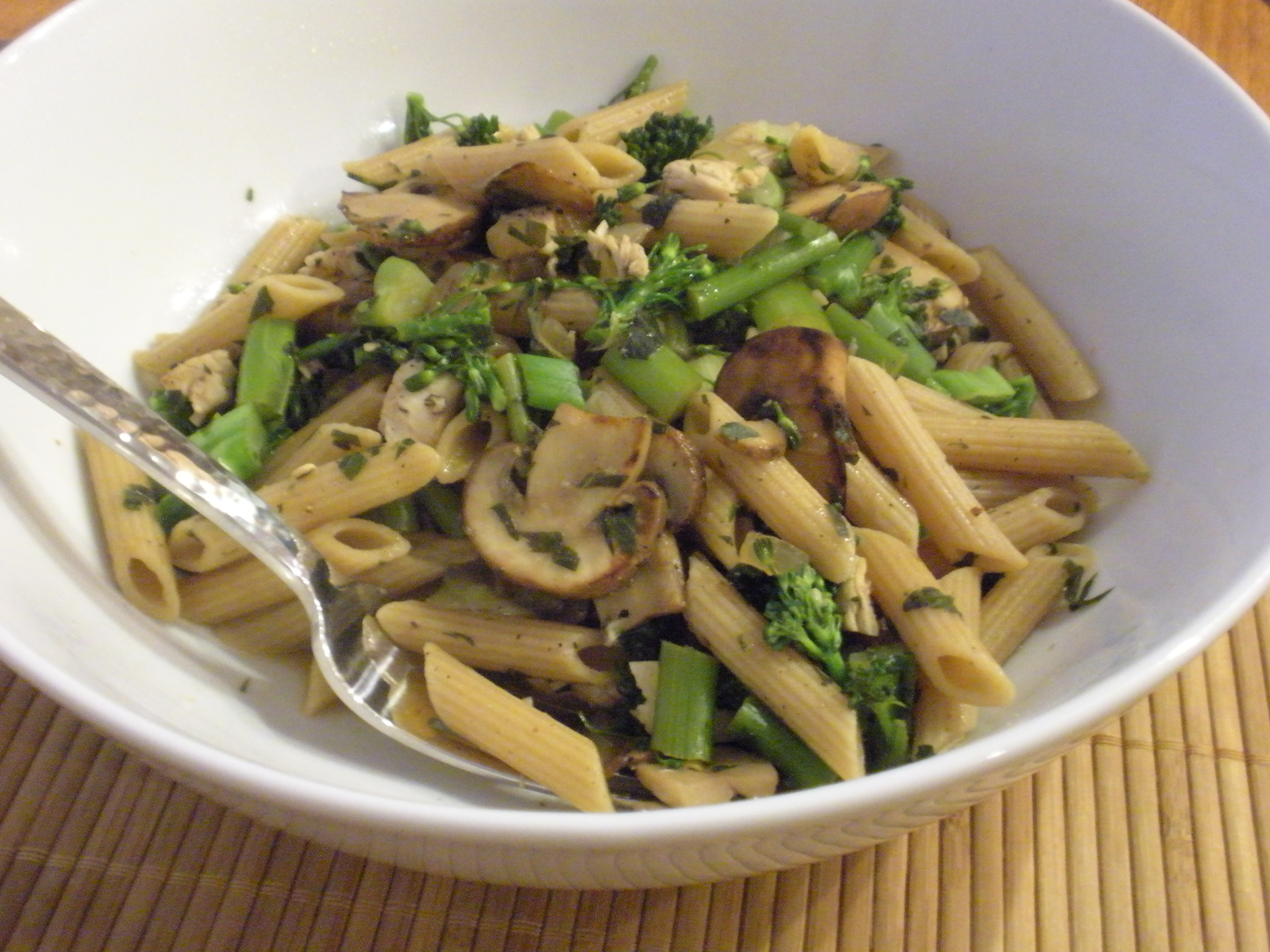 On to dinner. I sauteed the vegetables. John cooked the pasta. We put the two together with a little chicken stock. Dinner. BTW, broccolini is really tasty.