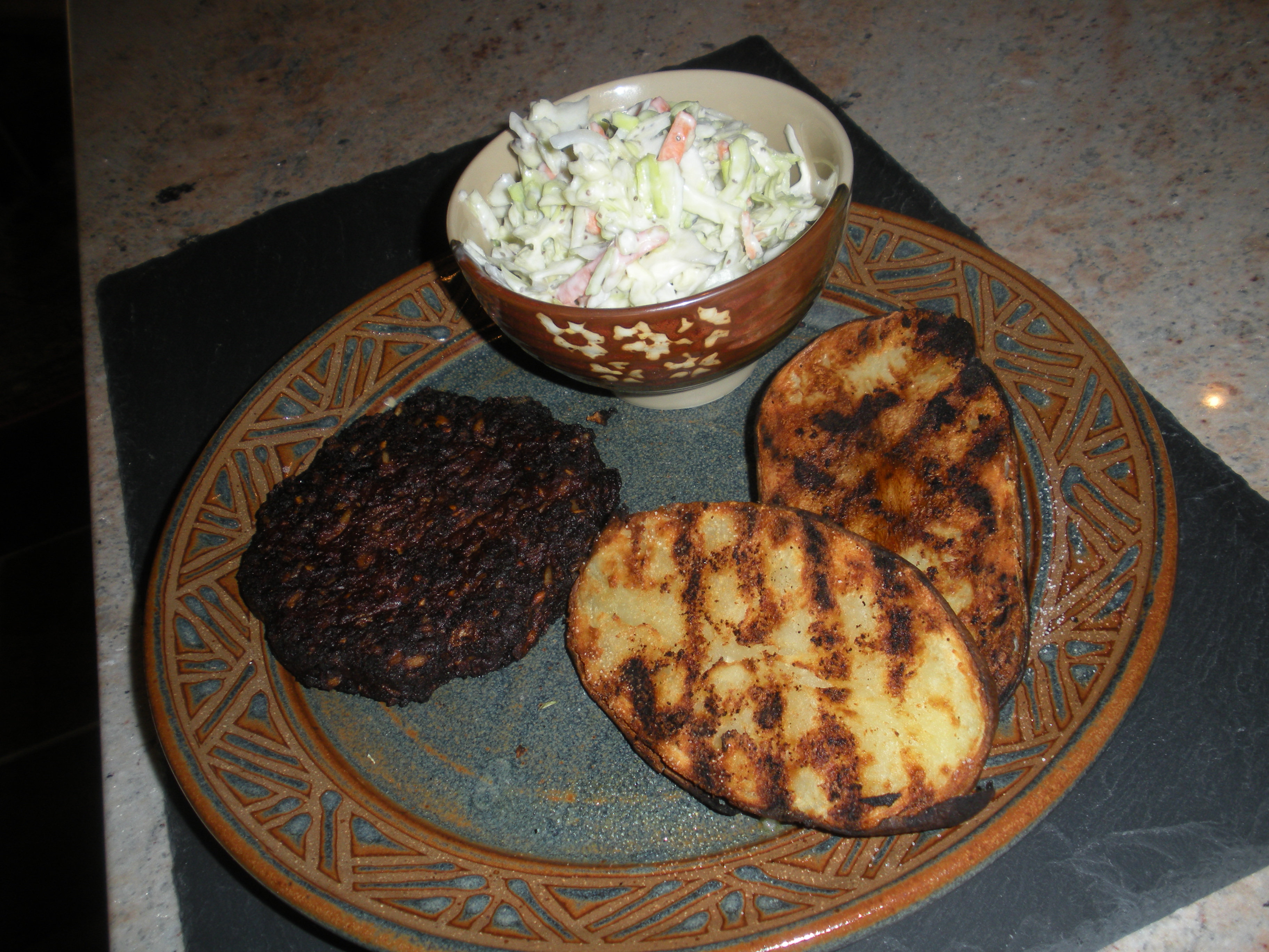 2:30 PM – chipotle bean burger (no roll), grilled potato and homemade lowfat cole slaw