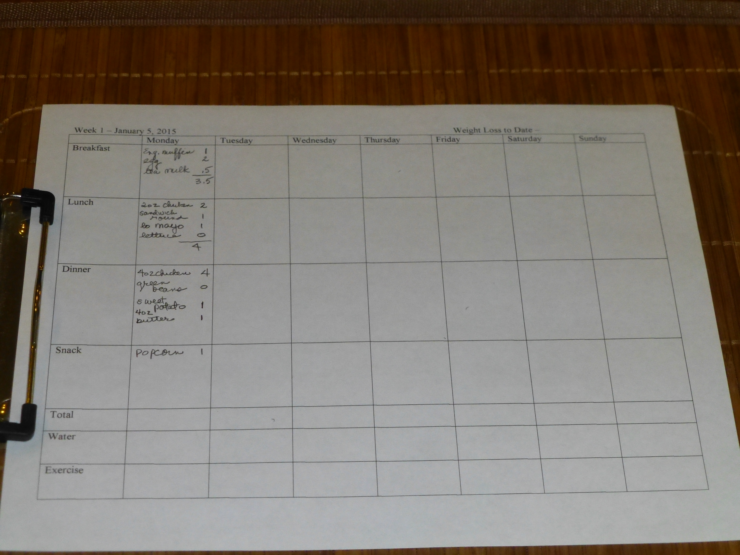 First, most importantly I keep a food diary. I like to decide what I am planning on eating for the day and write it down first thing in the morning. For some reason it helps to keep me honest. I am making a commitment for a day’s worth of eating and all I have to do is fulfill it. As soon as we figure out our exercise routine, I’ll put that in as well.