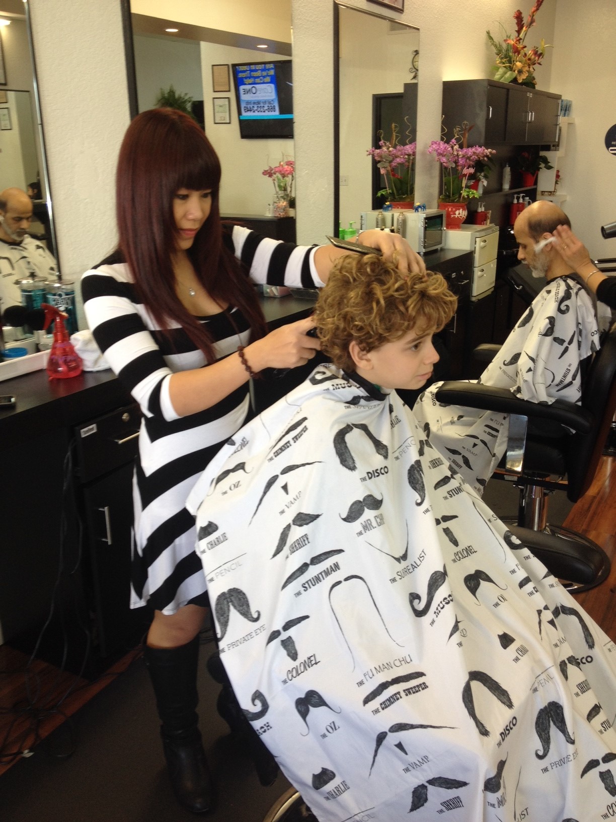 On Sunday Jon comes over with Nathan and Sam. After playing with Legos for a while, we decide to take the boys out for haircuts and lunch.