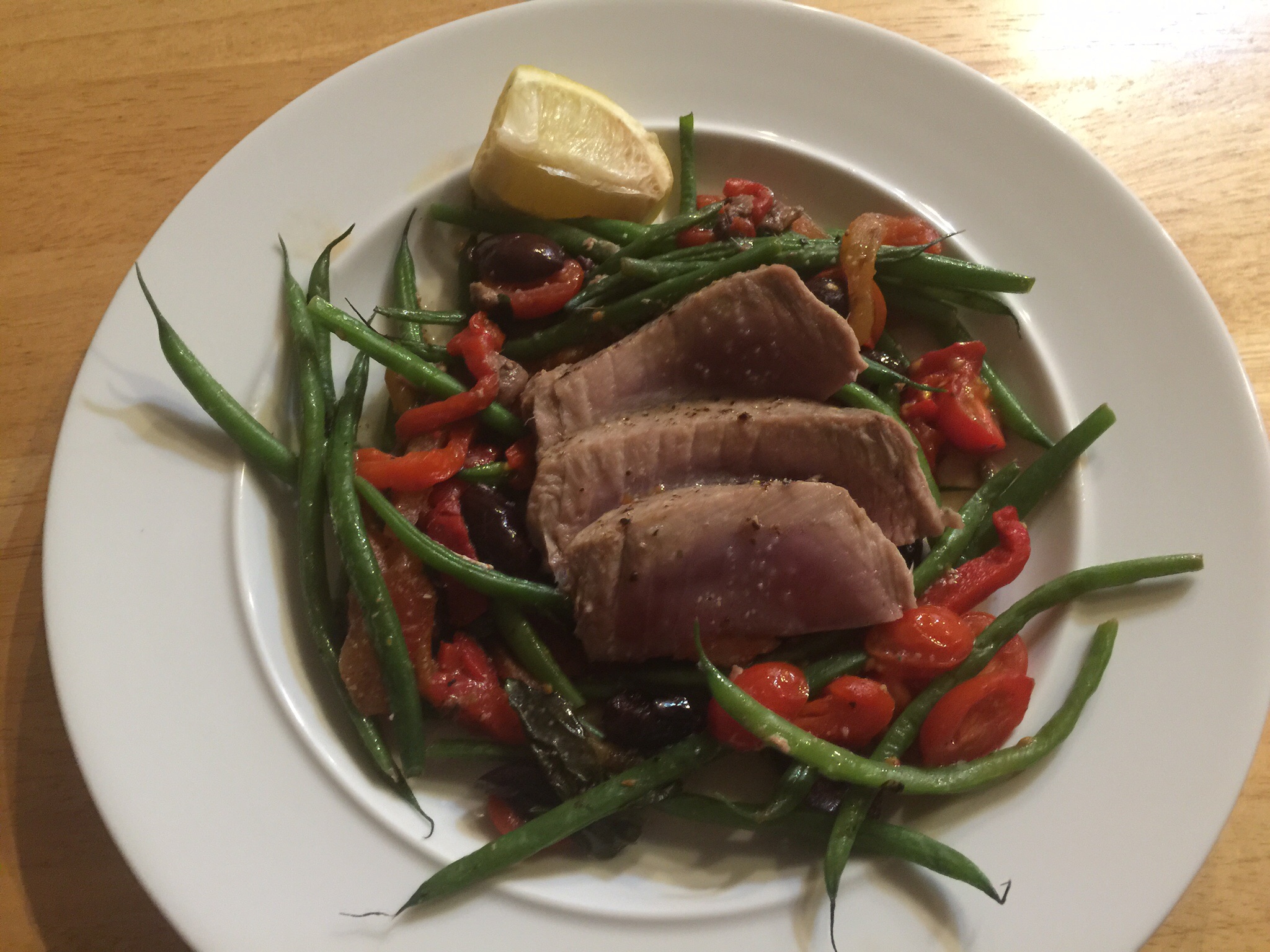 Tonight’s dinner is a version of Niçoise salad. It has all the usual ingredients except that they are all served warm.