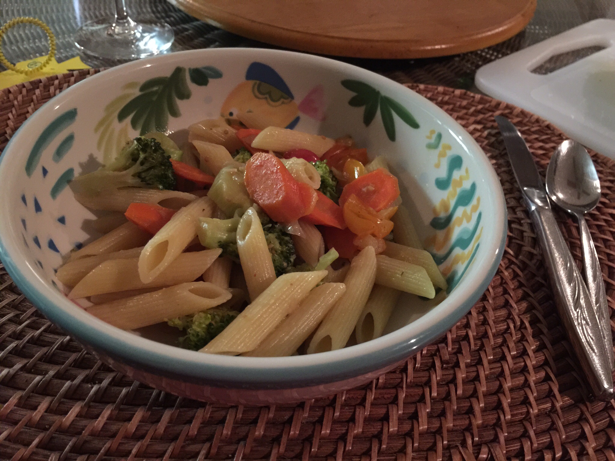 My turn today! For meatless Monday we started with a large salad and followed that up with a penne dish. The dish was dressed with a little olive oil and was easy and healthy.