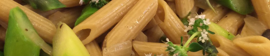 I love how the thyme flowers are the focus of this picture! This is such a good dish that highlights the seasonality of asparagus. It is easy to make. Just cut the asparagus into a penne shape, then sauté the onions, mushrooms, and garlic. When the penne is ready, dump it in the pan with the onion mixture and the asparagus. Add some reserved pasta water and cook until the the water is mostly absorbed. Top it with some fresh thyme and an additional drizzle of good olive oil.