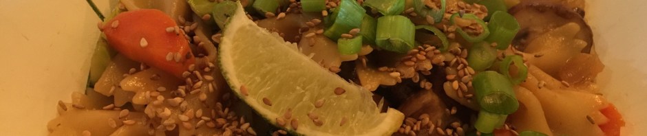 We really stretched the pasta tonight by adding a bunch of vegetables. I sautéed the mushrooms, onions, garlic, and carrots while the pasta cooked. John toasted some sesame seeds and chopped up some green onions. Right before the farfalle was done I added some pasta water to my pan and started the broccoli. This way the broccoli retained its color and texture. Add the farfalle to the vegetables, as much peanut sauce as you like, and some more pasta water for a good consistency.