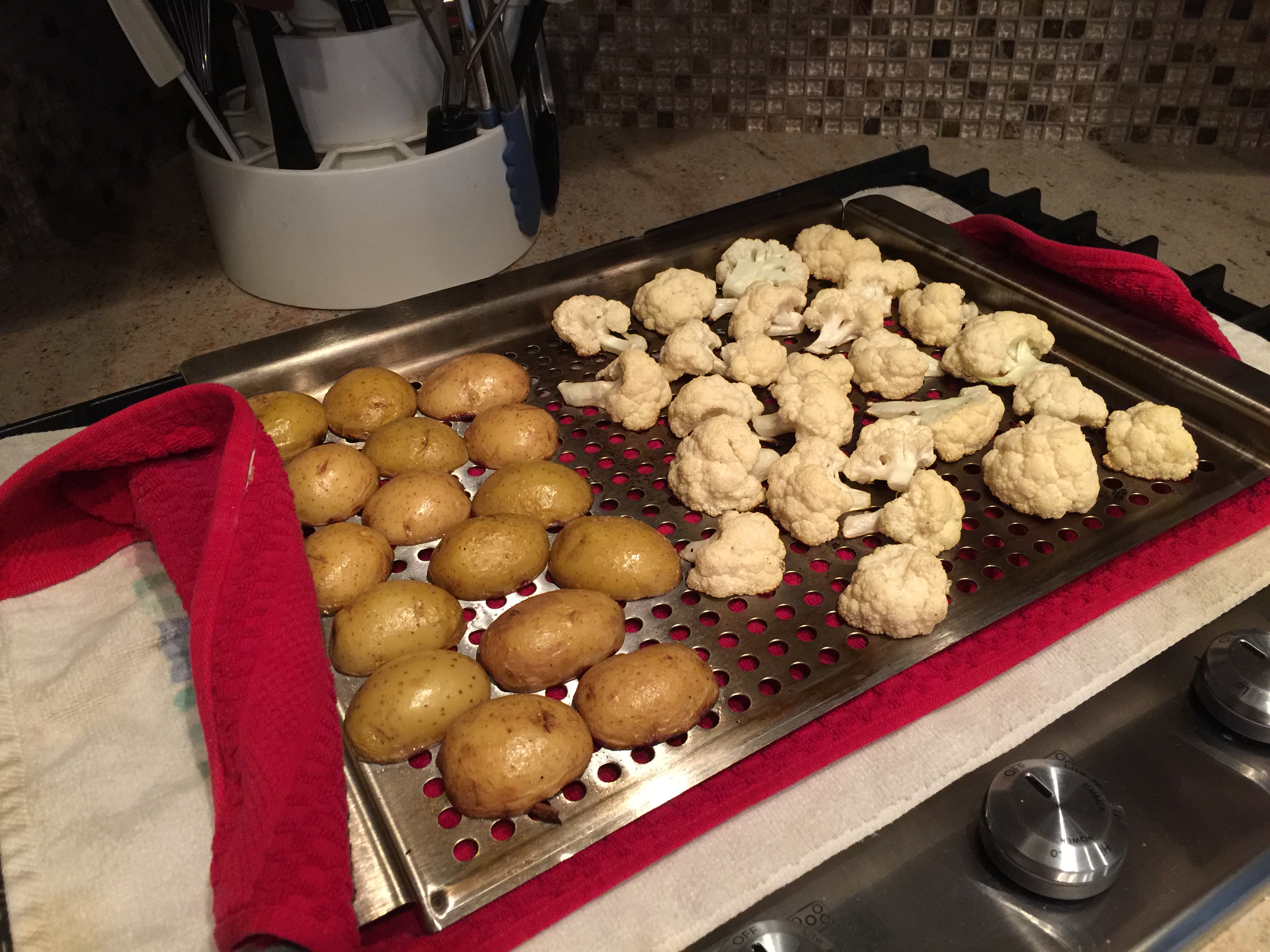 Today we bought a new gadget to use on our grill. It is just a piece of perforated steel but the holes are a good size for letting vegetables get grill marks but not fall through.