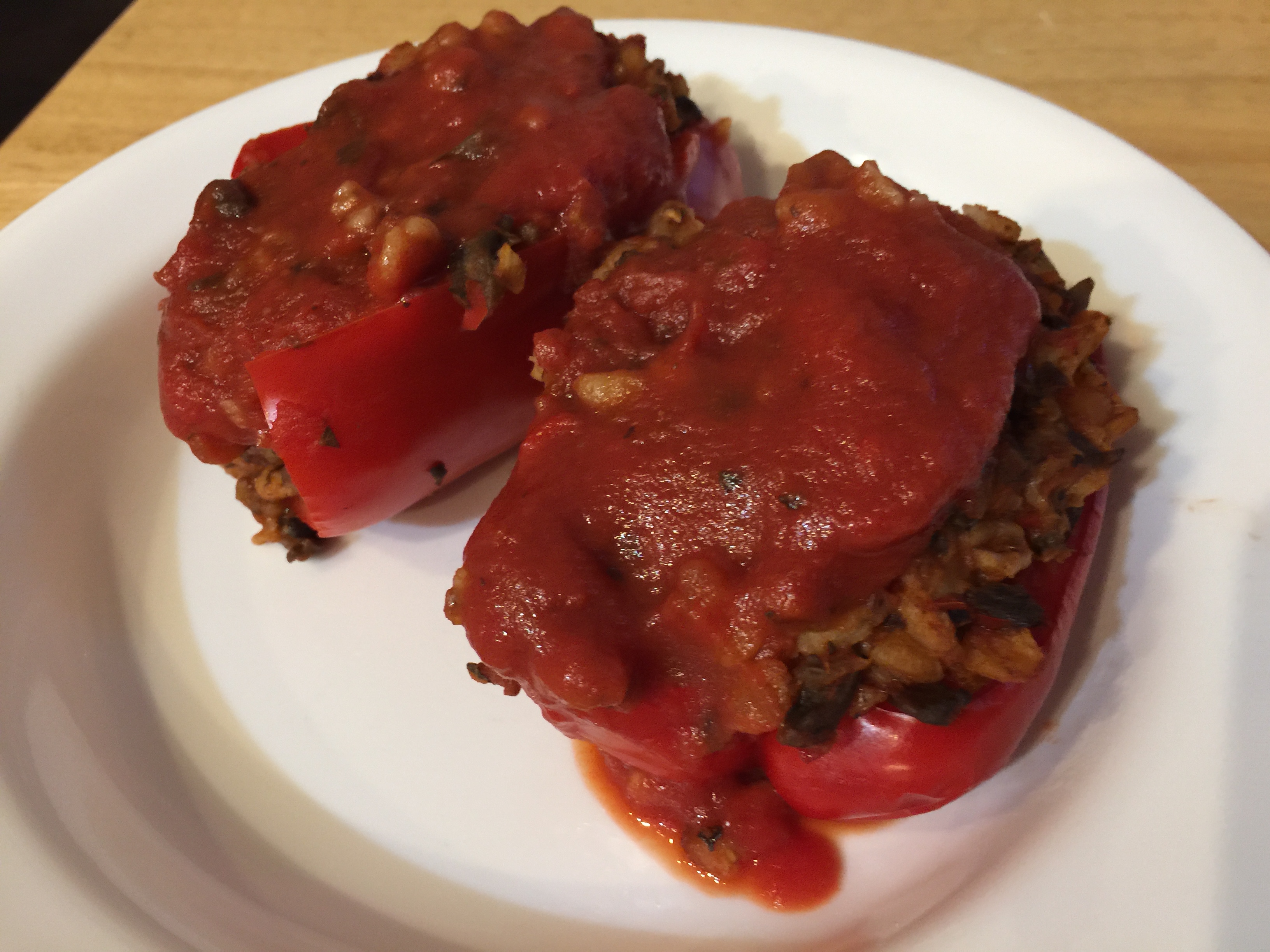 1 Response to July 18 & 19, 2016 – Meatless Monday and Tuesday – Red bell peppers stuffed with farro and mushrooms