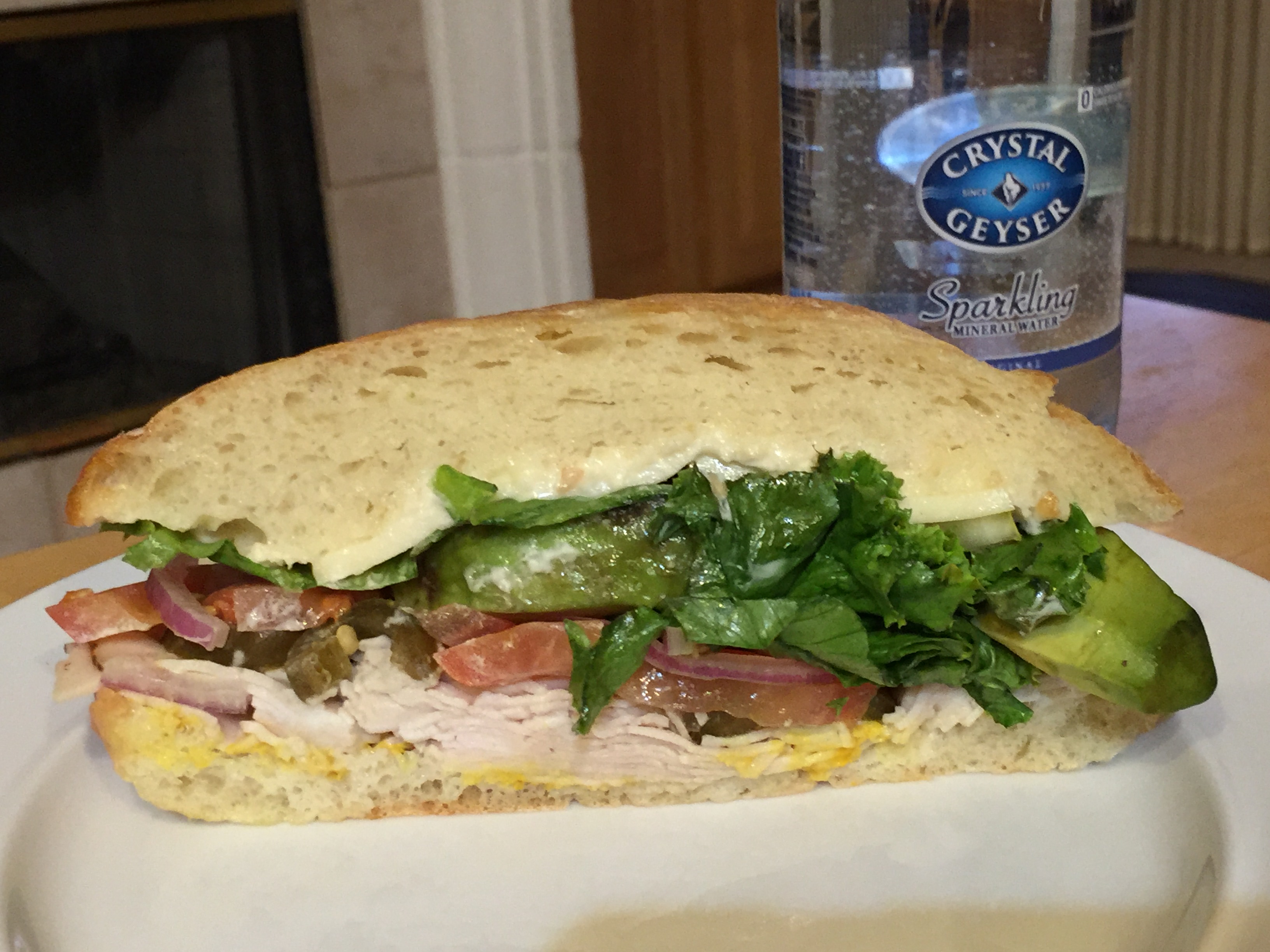 Today we had lunch with friends. They had bought sandwiches at the local deli. When asked what I wanted, I said turkey with all the vegetables. What I got was turkey with the vegetables but also cheese, avocado, plenty of mayonnaise, and a giant ciabatta roll – way too much! I politely ate half. When we were leaving, our sandwich halves were pressed upon us. Quickly changing our dinner plans and emptying out the sandwich innards and some of the roll that I didn’t want, I ate the other half for supper.