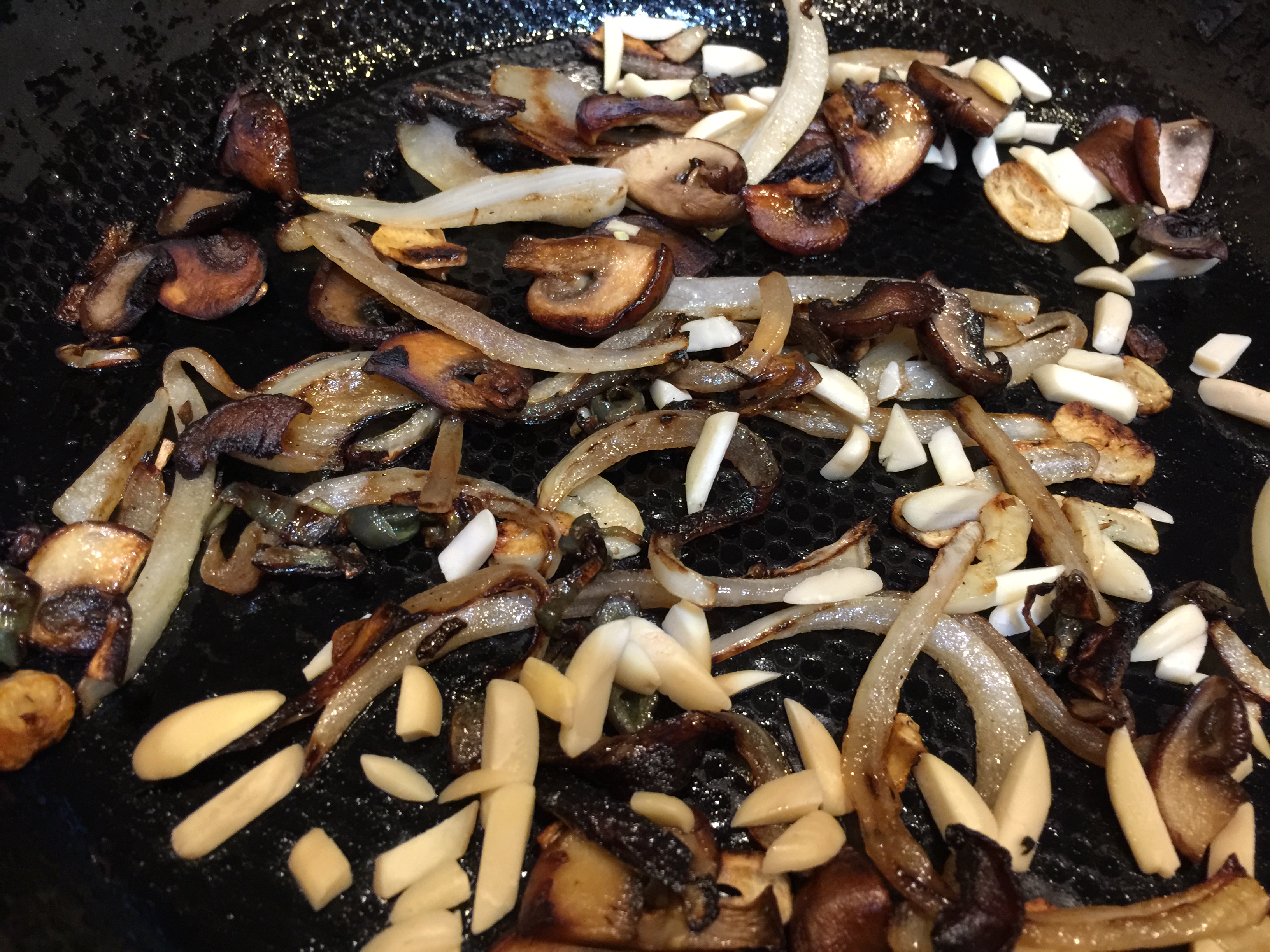 I decided to add some onions, mushrooms, and slivered almonds and heat the whole thing up.