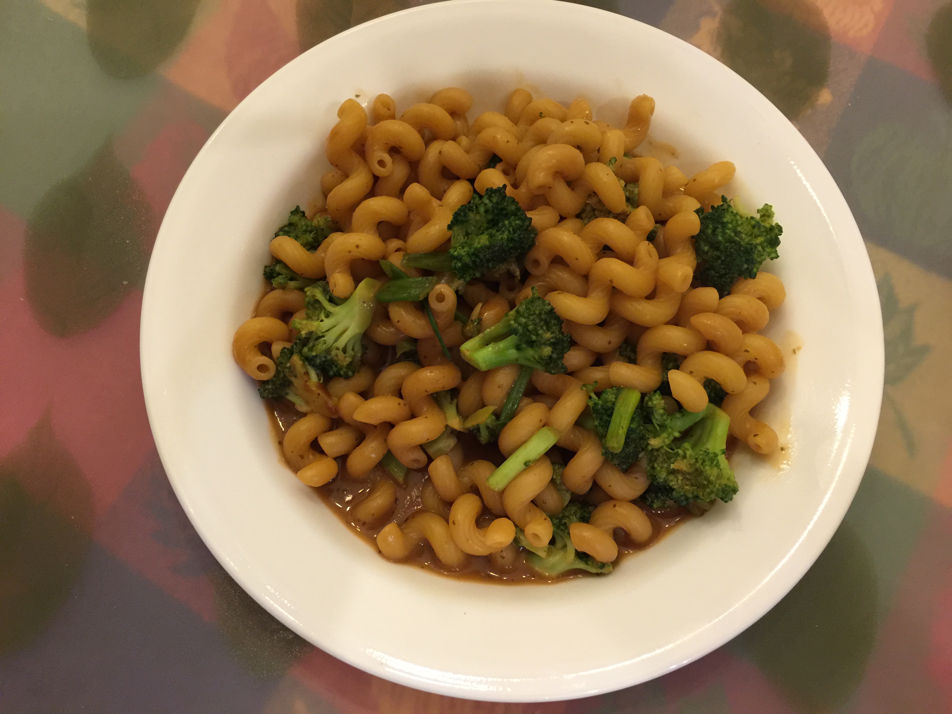 This was an easy dinner to whip up in about 15 minutes. I love the spicy peanut sauce and I will never say no to pasta.