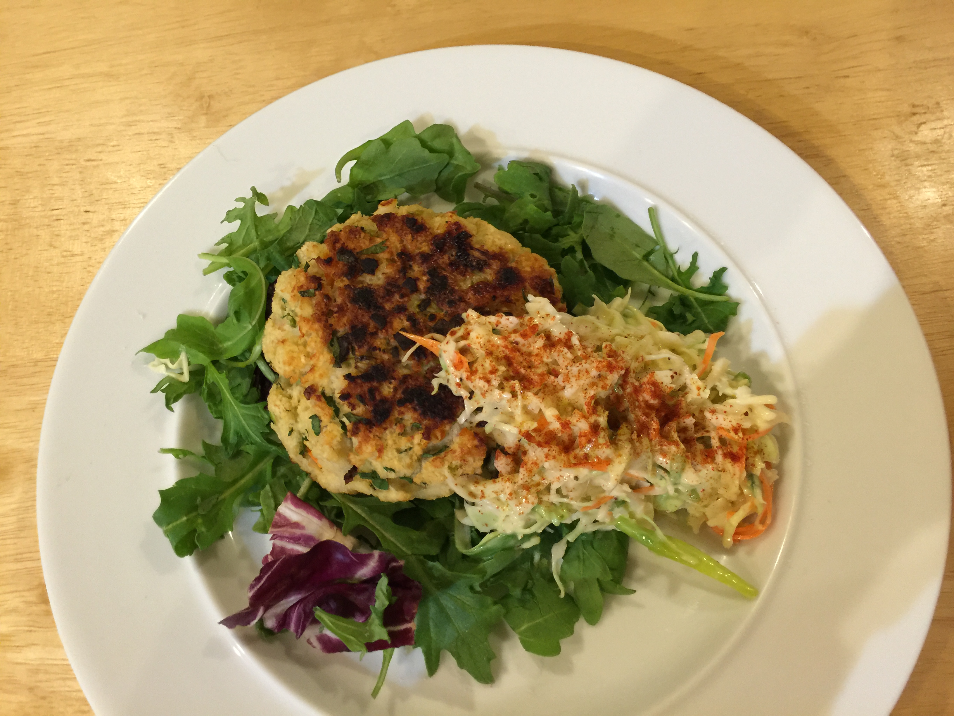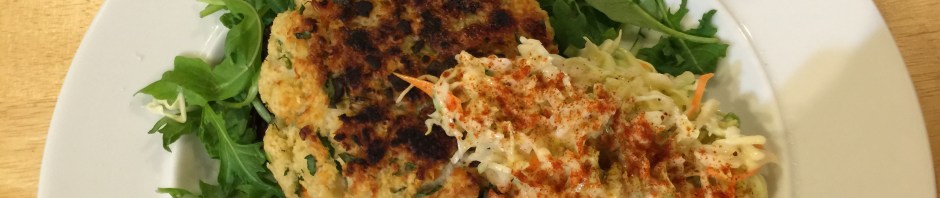 Our entire dinner consisted of seafood cakes, corn, and coleslaw but I made the corn first (2 large ears in a plastic bag with some butter and microwaved 5 minutes, so easy!) and we totally devoured it before I even thought about my camera.