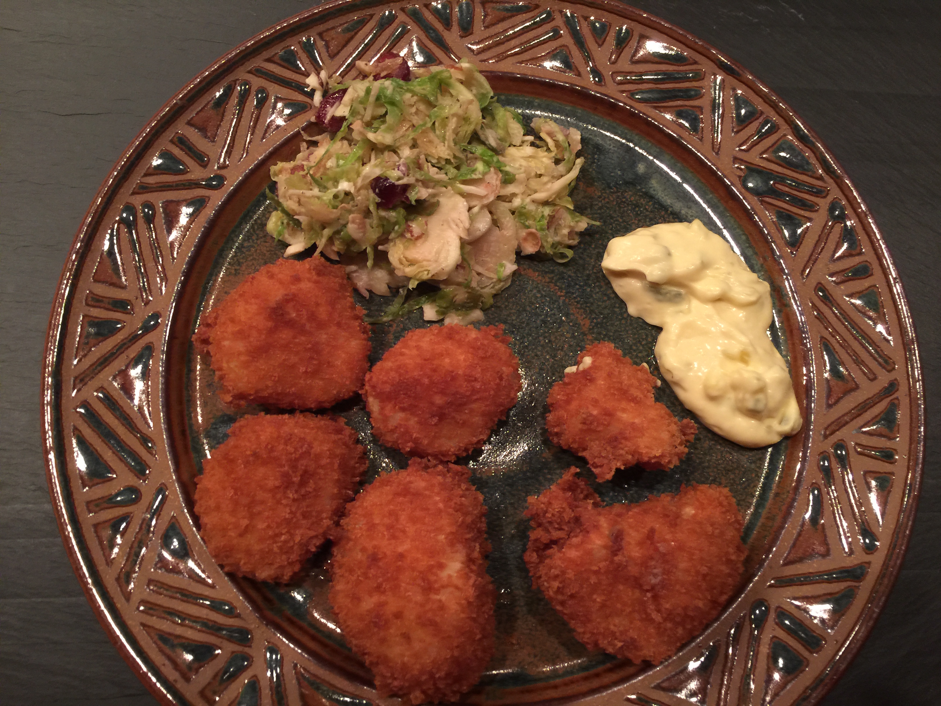 Last night we took a little break from cooking but tonight we were back on the make-it-at home trail. Since our son is visiting us this week we are making everything he likes best. Tonight it’s fried scallops with a brussel sprouts salad.