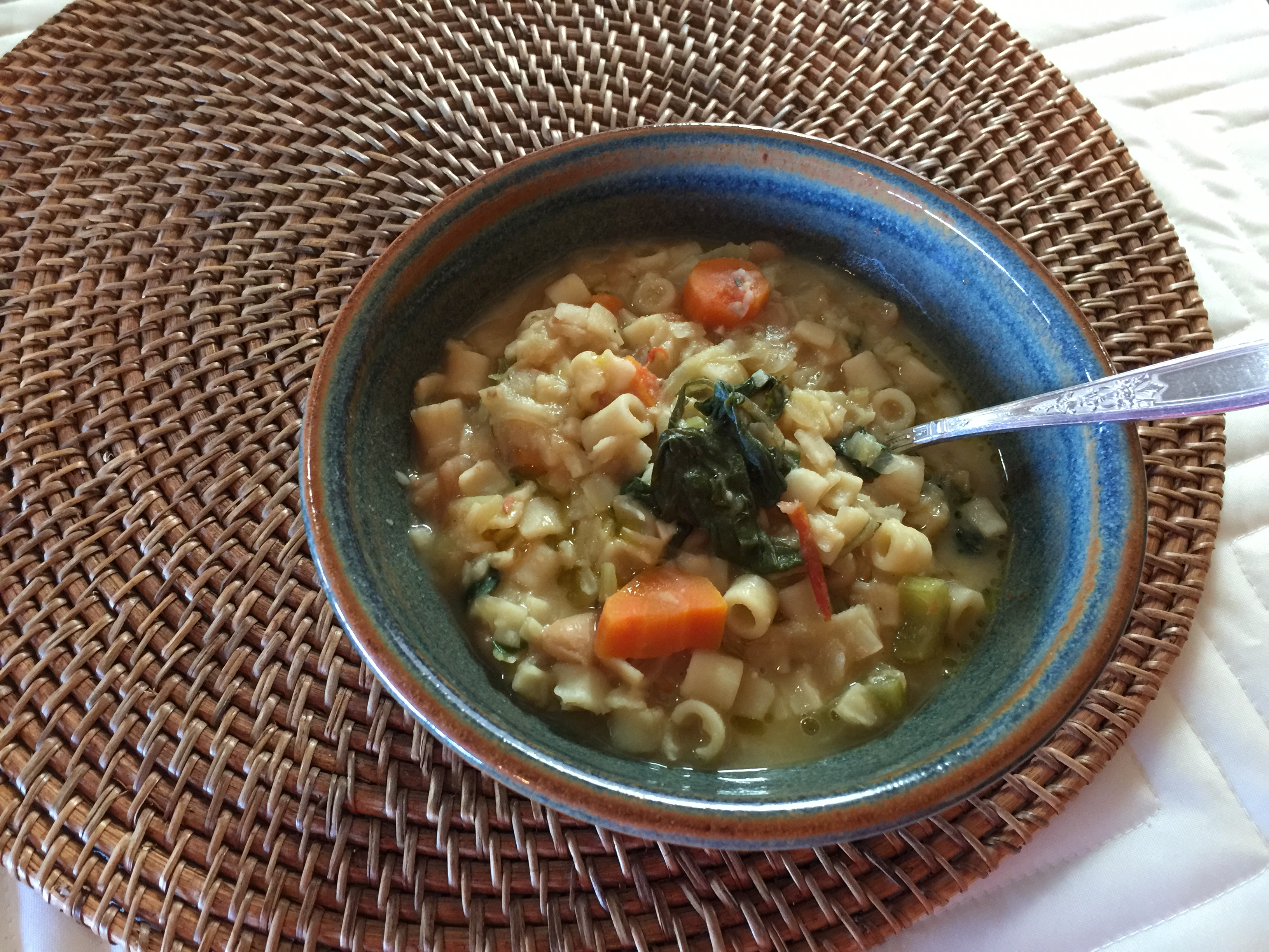 I made this dinner on September 11, 2016 and stuck the leftovers in the freezer. Since we are leaving Utah for home tomorrow and don’t want to mess up our just cleaned kitchen, tonight is the perfect time for planned-overs. I usually make this dish with chickpeas but cannellini work just as well.