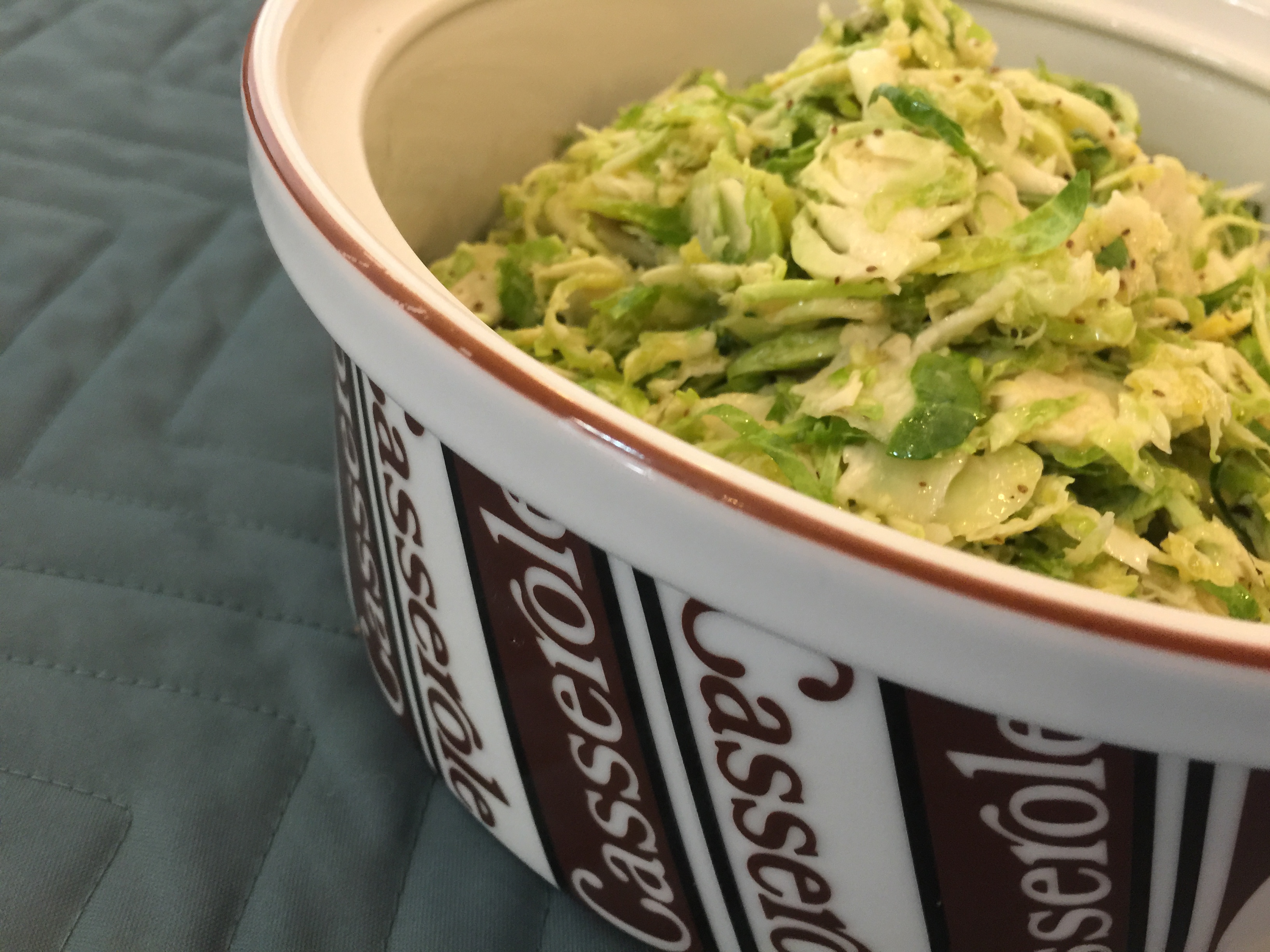 Since my previous post we drove home from Utah and had breakfast for dinner when we got in from 12 hours on the road. Saturday night we opted for Chinese food. But on Sunday we had the whole family over for hamburgers (better known as Zaydeburgers), Brussels sprout slaw, and warm olive oil and thyme potato salad. Plus there was cranberry upside down cake for dessert!