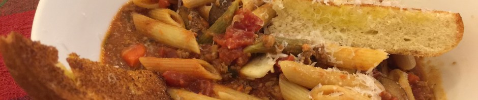 This was no elaborate transformation. I just added a can of tomatoes, some water, herbs, and tomato sauce. I served it with penne which I like way more than rigatoni. It was delish and super easy.