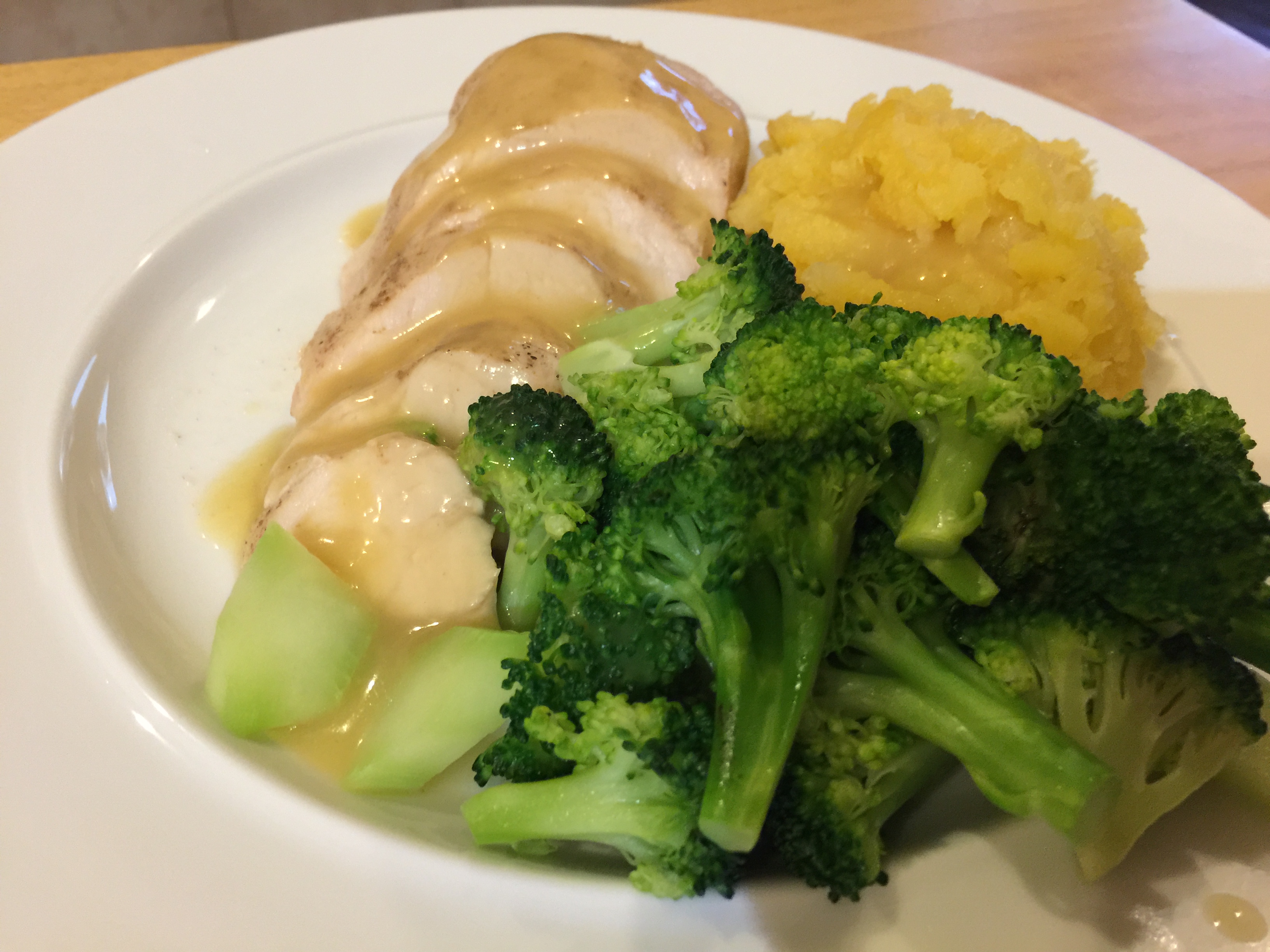 Dinner tonight was back on track! John sous vide a boneless skinless chicken breast using his new container and vacuum sealer. I made broccoli (again!) and rutabagas using my new ceramic knives. I cooked the rutabagas in the microwave which made for a much easier clean up. The pressure cooker may be a little faster but it is kind of a production. John also made up a packet of chicken gravy (25 calories for a quarter of a cup) so the dinner seemed less diet-y. We didn’t eat up all the chicken so tomorrow night’s dinner will be chicken pasta with, you guessed it, broccoli!
