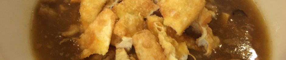 Since we are a multicultural household we celebrate both Christian and Jewish holidays. Plus since we were busy on the first day of Hanukkah celebrating Christmas Eve we missed having our usual Hanukkah treat, potato latkes. Tonight’s dinner was an opportunity to make amends with a not exactly traditional dinner. Our fried entree was takeout hot and sour soup with crispy noodles on top and potstickers! Yum!