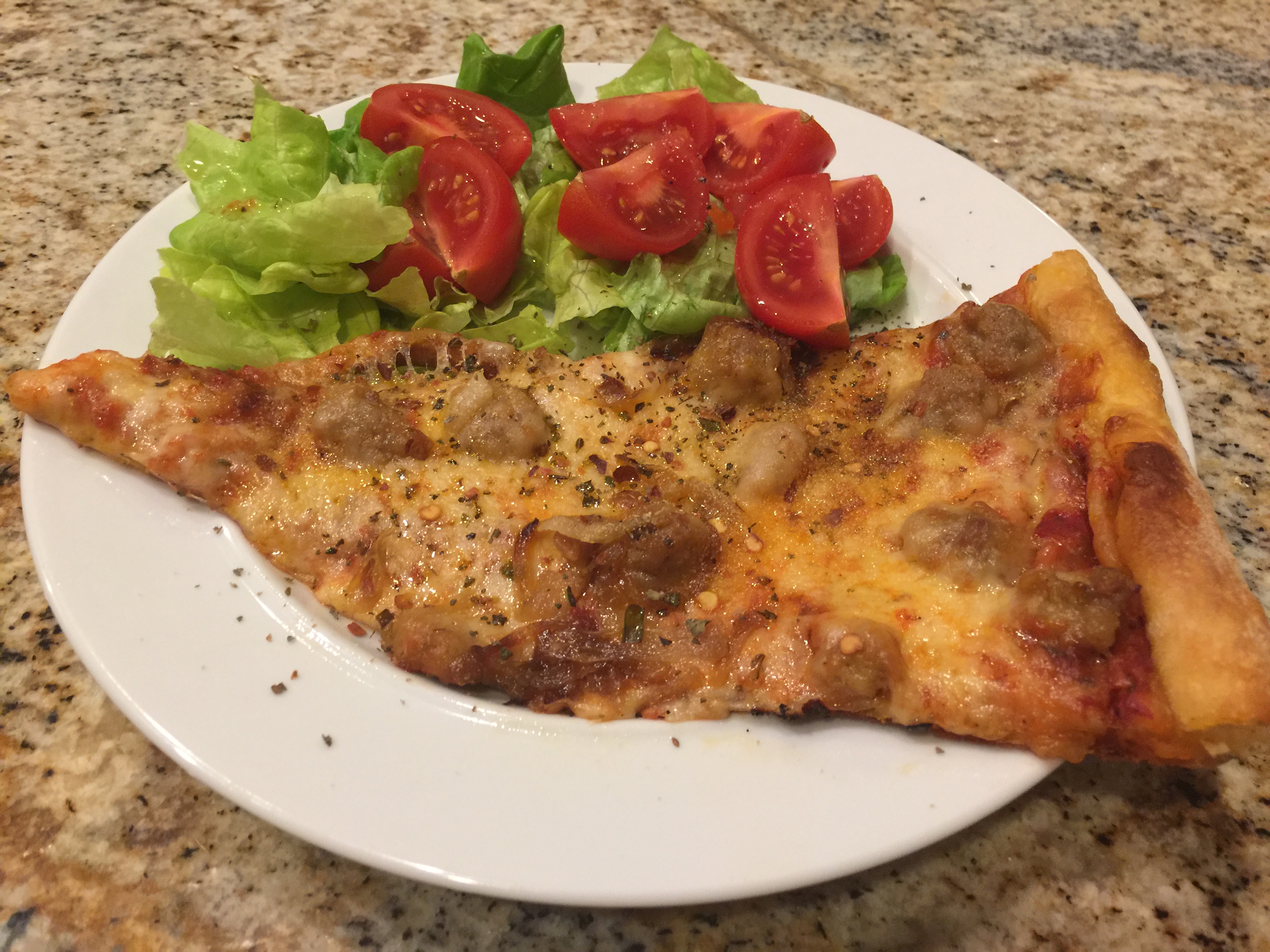 This is the best way to reheat pizza in my opinion. Reheating pizza in the microwave alone gives you a sodden crust but don’t abandon your microwave completely! Microwave a slice for 30 to 45 seconds and then put the piece in a preheated frying pan. The crust crisps up in a minute or two. Watch that it does not burn. You end up with warm toppings from the microwave and a crisp crust from the frying pan. Good as new!
