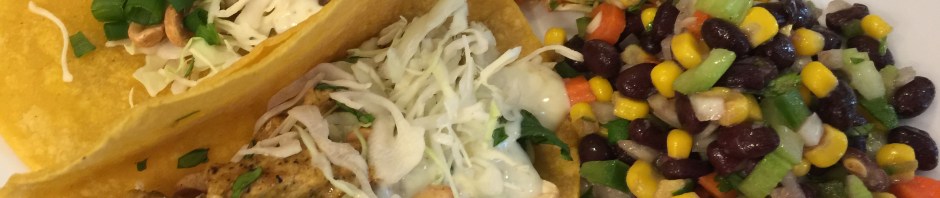 The slaw is dressed with a peanut sauce and the other dish has black beans, corn, carrots, cilantro, jalapeño and a sweet and salty sauce.