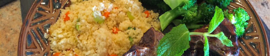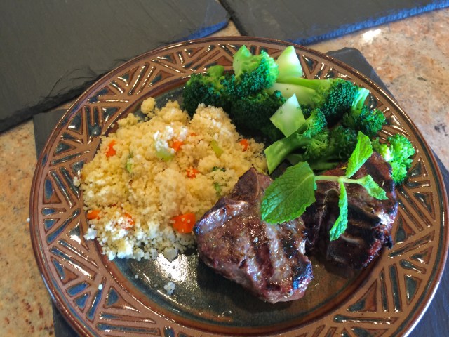 Once we got to Utah, we looked in the freezer. I feel like we need to eat what we have. Most of the proteins lend themselves to the hunk of meat, vegetable, starch kind of dinner. Ergo, lamb chops, couscous, and broccoli.