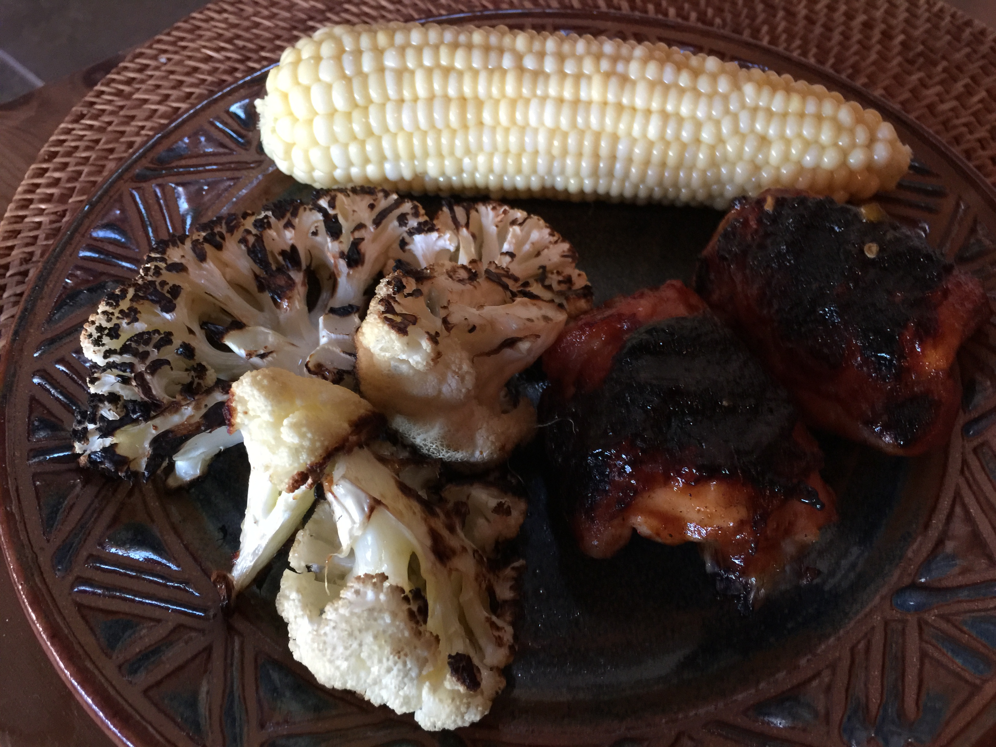 For our second day of grilling we went with chicken thighs, cauliflower and corn on the cob.