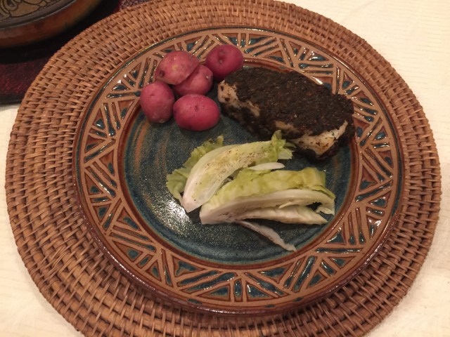 John tested for doneness with a thermopen before doing the broiling. Luckily Chilean sea bass is a very forgiving fish when it comes to overcooking.