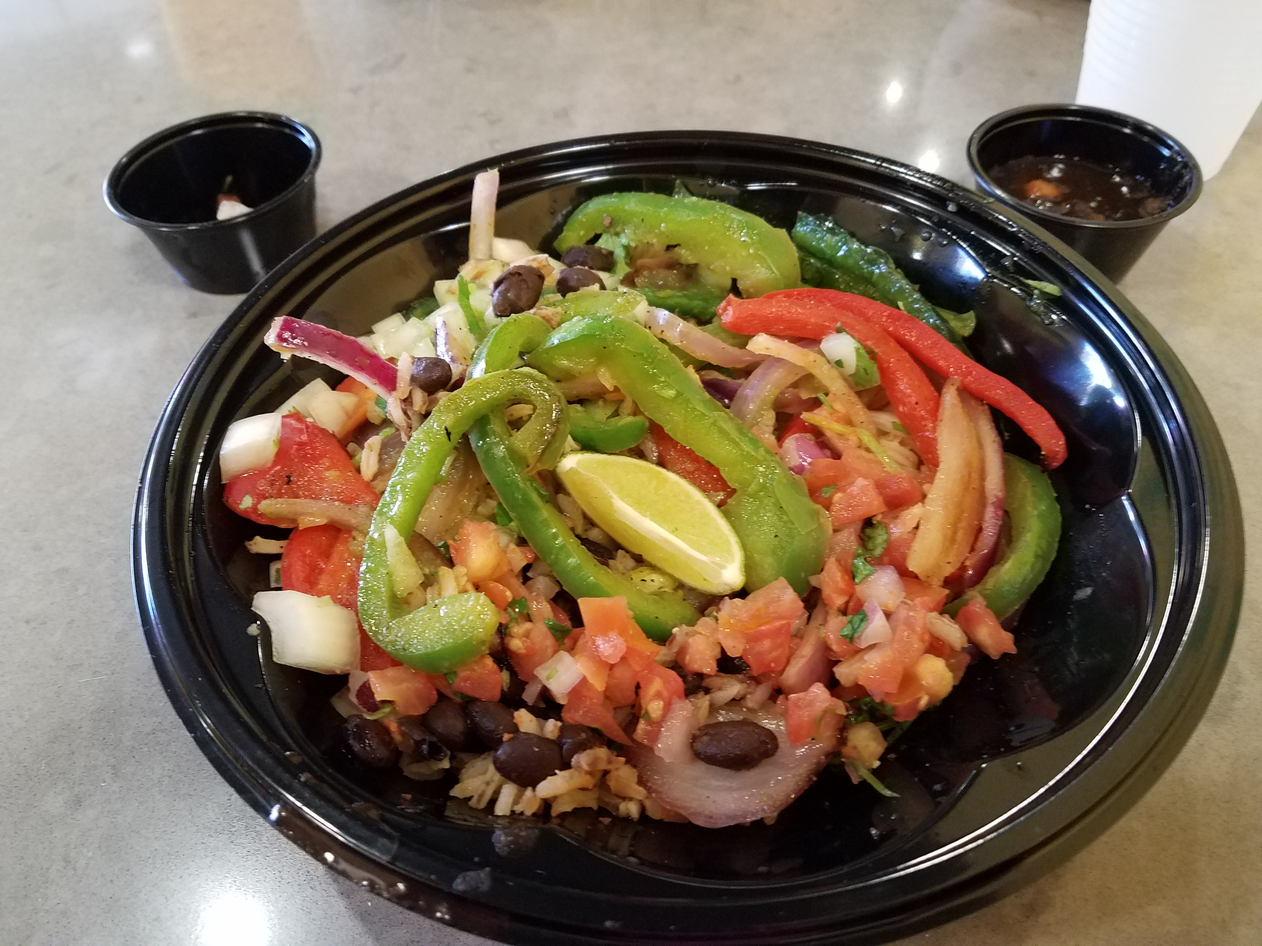 After a quick piece of toast with peanut butter, daughter and I were off to get our hair cut by the amazing Gretchen. We are willing to schlep over to Burlingame for her expertise. We make a good half day of it ending with a late lunch out. Today she chose Baja Fresh because she likes it and she knows I can get something I want to eat. I settled into a veggie Baja bowl that was good although contained way too many green bell peppers.