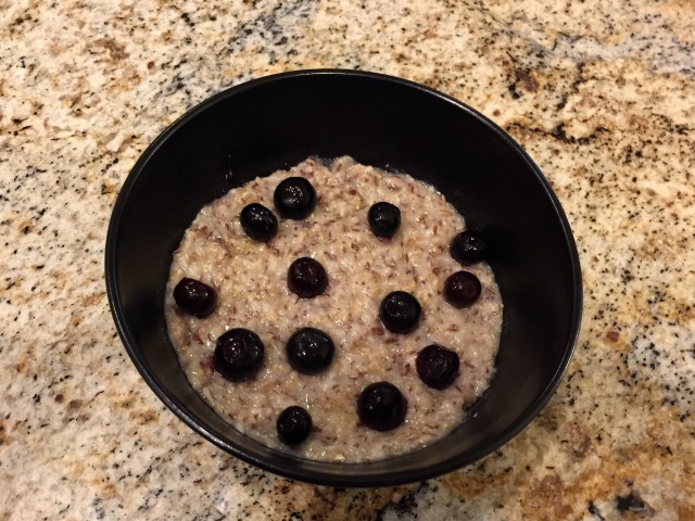 Since I am always mentioning my breakfast I thought I would take a picture of it today. Ta da! Steel cut oatmeal with flaxseed and blueberries. I am still missing all the other breakfasts I used to have and feel a little rebellious about having to eat it every day. Plus it looks like my countertop!!!