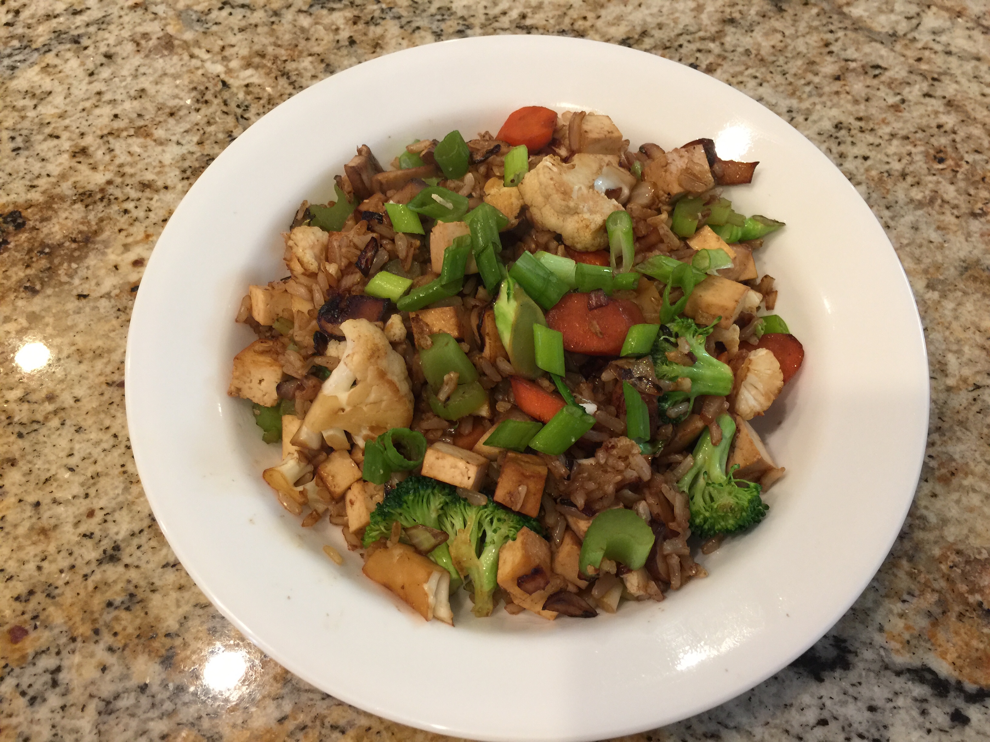 I really like ethnic foods. They have such a flavor punch after eating a bunch of American food (see Thanksgiving.) For lunch today I finished daughter’s brown rice. There was about a half of a cup left. To complement the rice I made a Chinese inspired vegetable mix using carrots, celery, broccoli, cauliflower, and onion. I also used up the last of my baked teriyaki flavored tofu. I flavored the vegetables with ginger, garlic, and soy sauce. What a filling and tasty lunch!
