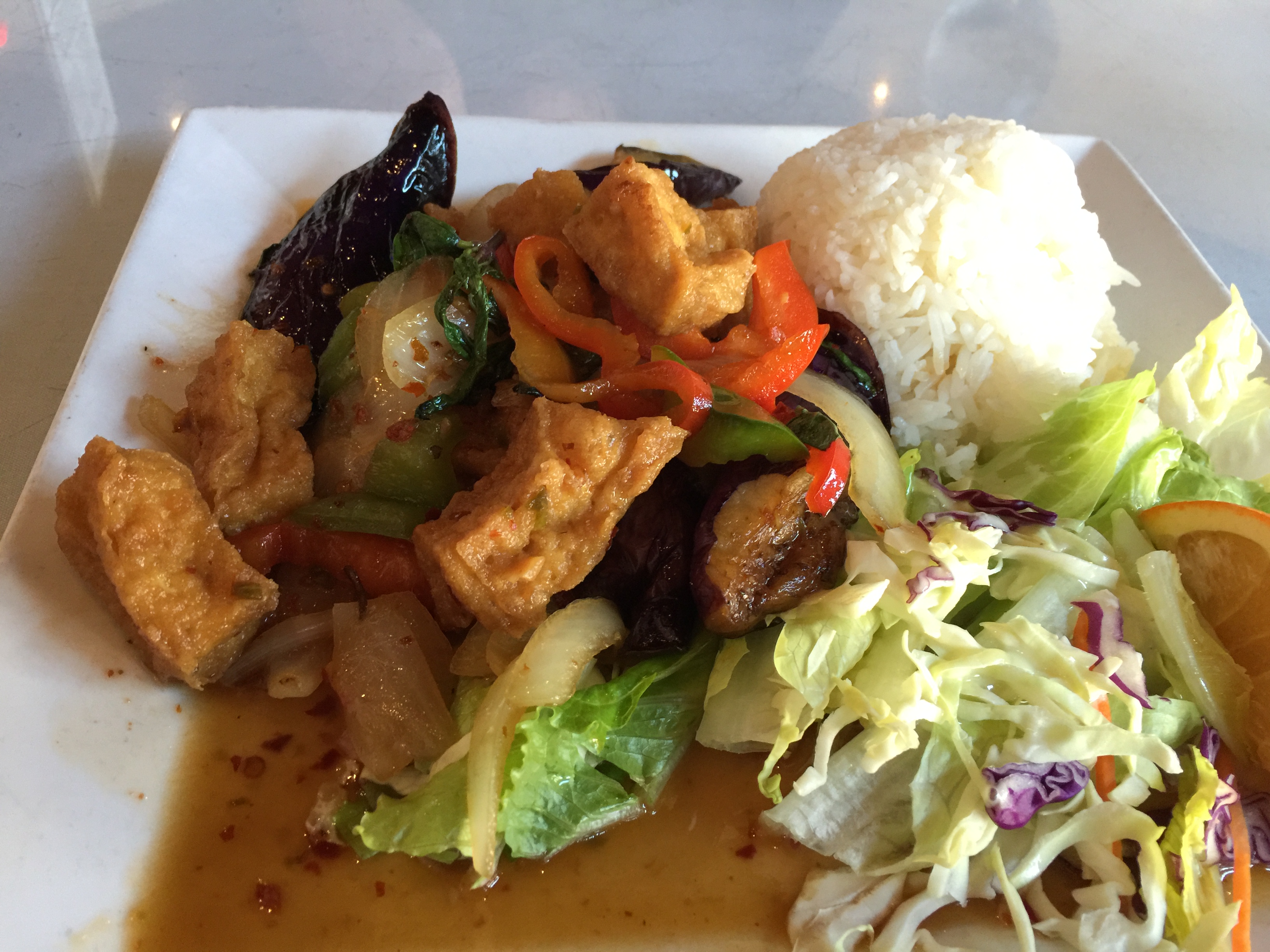 We order our favorite, #12, Spicy Thai Basil Tofu with Eggplant. It does not disappoint. I need to learn to make this at home!