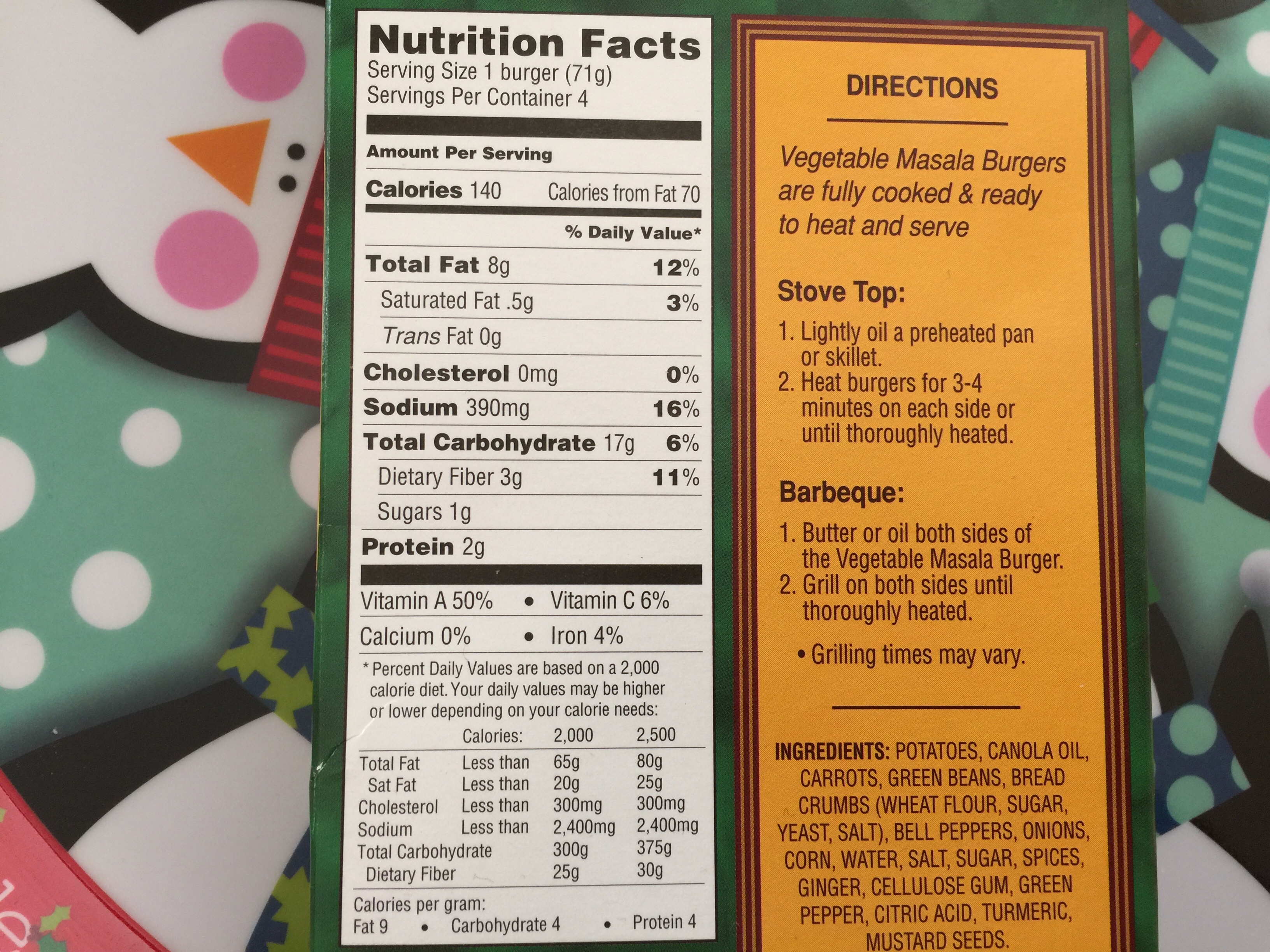 Starting with the Trader Joe’s Vegetable Masala Burger, I liked it much better than the Hilary’s World’s Best Veggie Burger. This burger had a nice vegetal taste with a slight spice at the end. It was also lower in calories and fat and is labeled vegan. I ate it in a pita pocket with lettuce and tomato (the same as I did for the Hilary’s) and did not feel that it needed a sauce or anything else to enhance it. It definitely does not taste even remotely like a beef burger but that is okay with me. I usually do not like the taste of the pretenders.