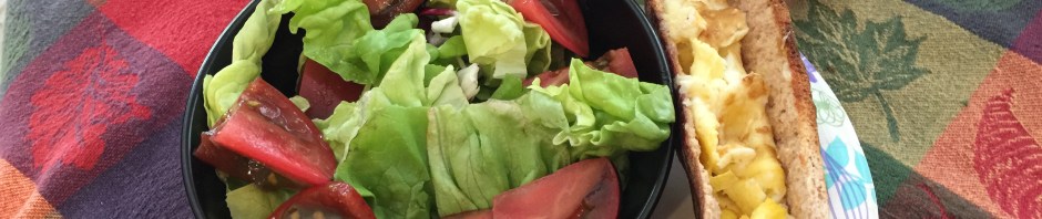 Omelet in a pita pocket and a salad (it is officially winter and we are still having daughter’s tomatoes!)