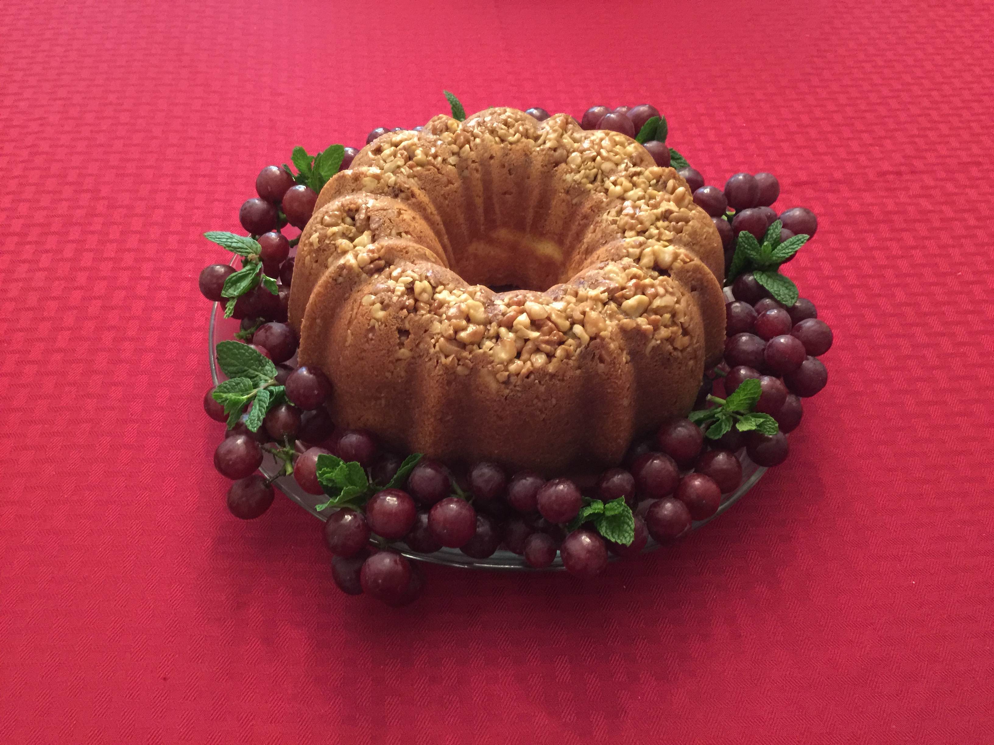 It turned out a bit boozy but no one seemed to mind. Decorated with red grapes and mint leaves, the cake is a festive addition to your holiday table.