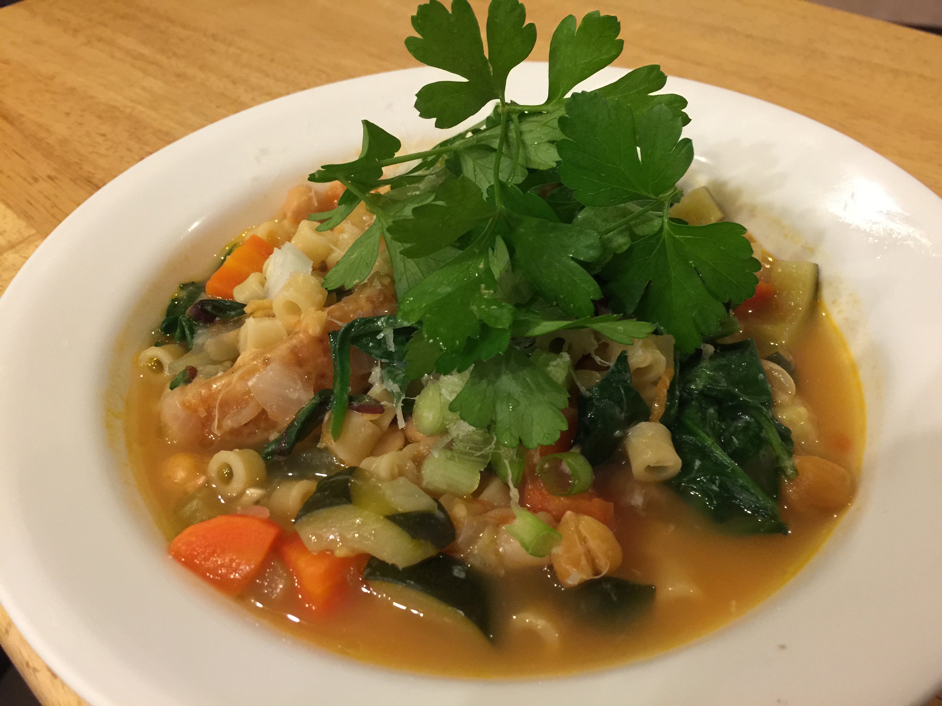 This is the chickpea stew made with ditalini instead of orzo and spinach instead of mustard greens.