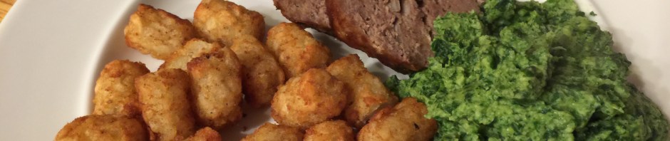 Meatloaf with spinach and tater tots