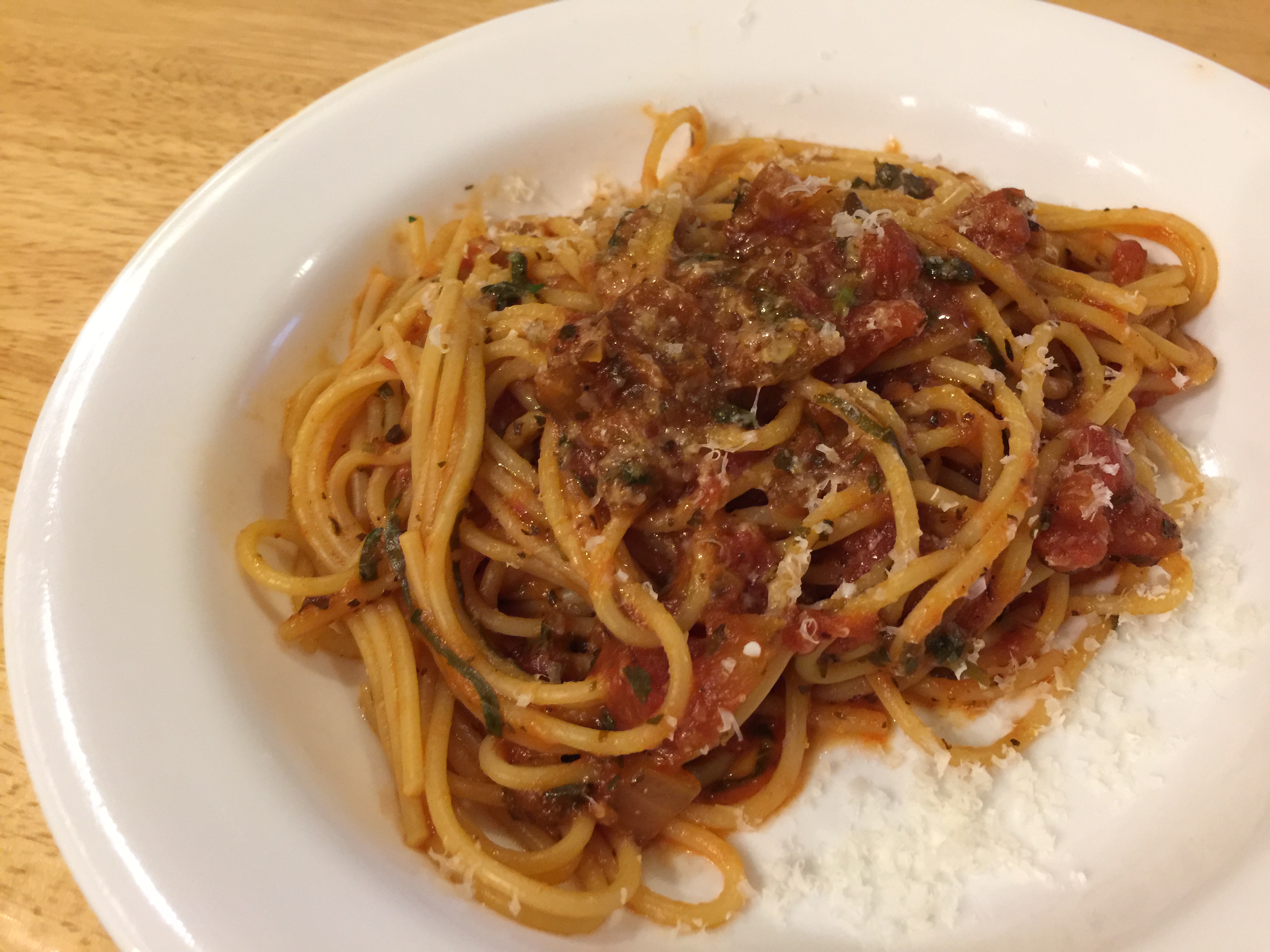 Having had quite a bit of animal protein last week, I started out this week with a vegetarian and a vegan dish. Actually the pasta was only vegetarian because I added some fish sauce and grated some parmesan cheese on it so the pasta could definitely be vegan as well.