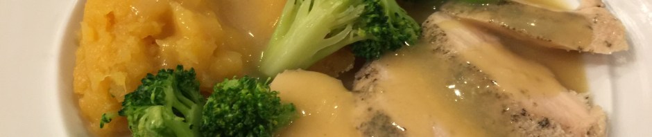 Our classic Chicken Monday plate always reminds me of Thanksgiving and is a real comfort dish for me. John sous vide the chicken breast which we split between us. I made the rutabagas in the Instant Pot and mashed them. The broccoli was steamed. The dish was finished off with a packet of chicken gravy.
