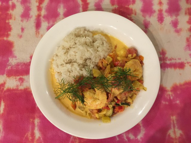 On Friday we got back to cooking and made the very delicious Shrimp in Pernod sauce.