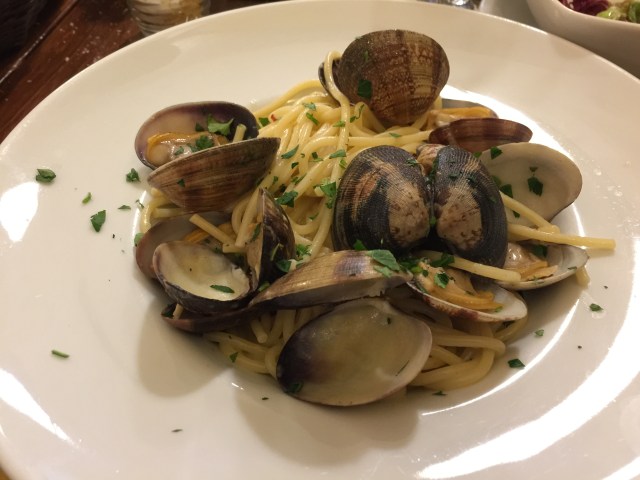 Ordered a fav of mine for lunch, spaghetti alla vongole (clams) which unfortunately had gritty clams and stuck together pasta. C’mon, Rome, you can do better!