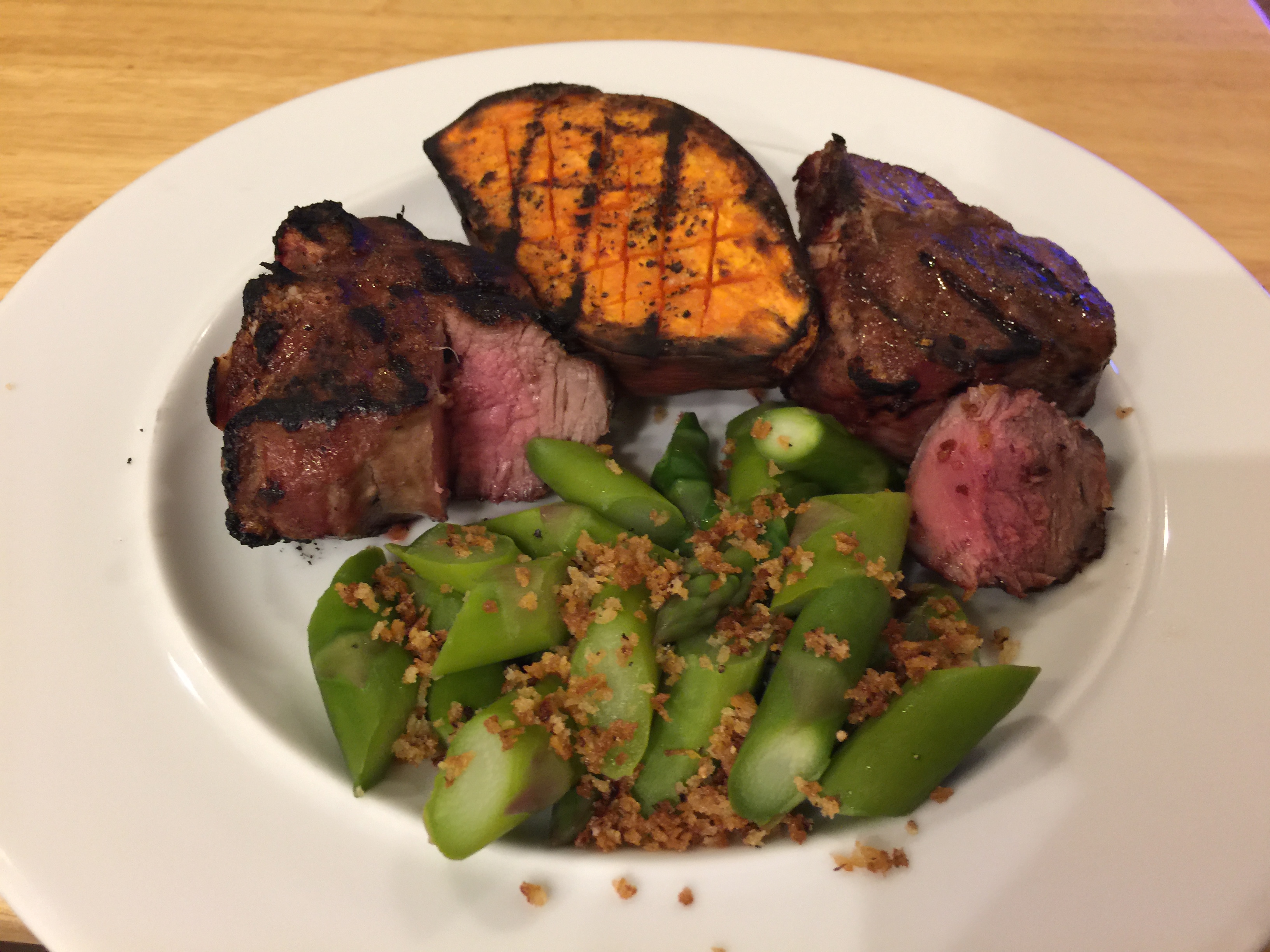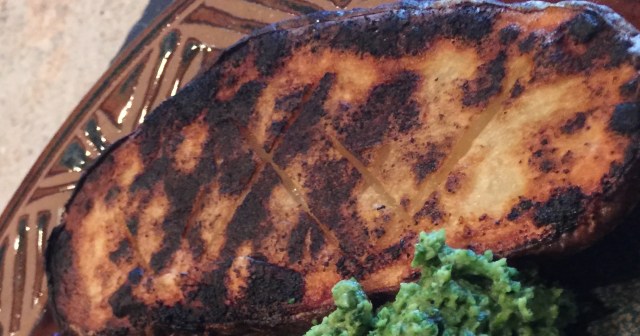 With our steak that I talked about in my last post, we had grilled baked potatoes. This is super easy. Buy a good sized baking potato since you will be eating half and your partner or whomever will eat the other half. Cut the raw potato in half longitudinally. Score the cut side of each half. Rub a little olive oil on the face of each potato. Add salt, pepper, garlic or whatever else you would prefer. Herbs are not a great choice since they burn. Microwave until just about cooked. When whatever else you are grilling is almost done, put on the potatoes cut side down. Check frequently so they do not get burnt but a nice char is great.