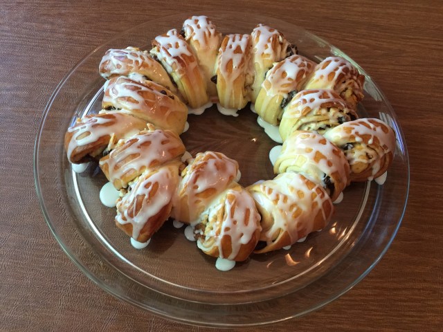 Our daughter who lives with us got up early to complete the Swedish tea ring she made for me. It is a favorite of mine from childhood. No, I am not Swedish. This was a coffee cake that the Dugan’s man use to bring to our house when he stopped a couple of times a week with a display case of breads and pastries. Things were very different in the 1950’s.