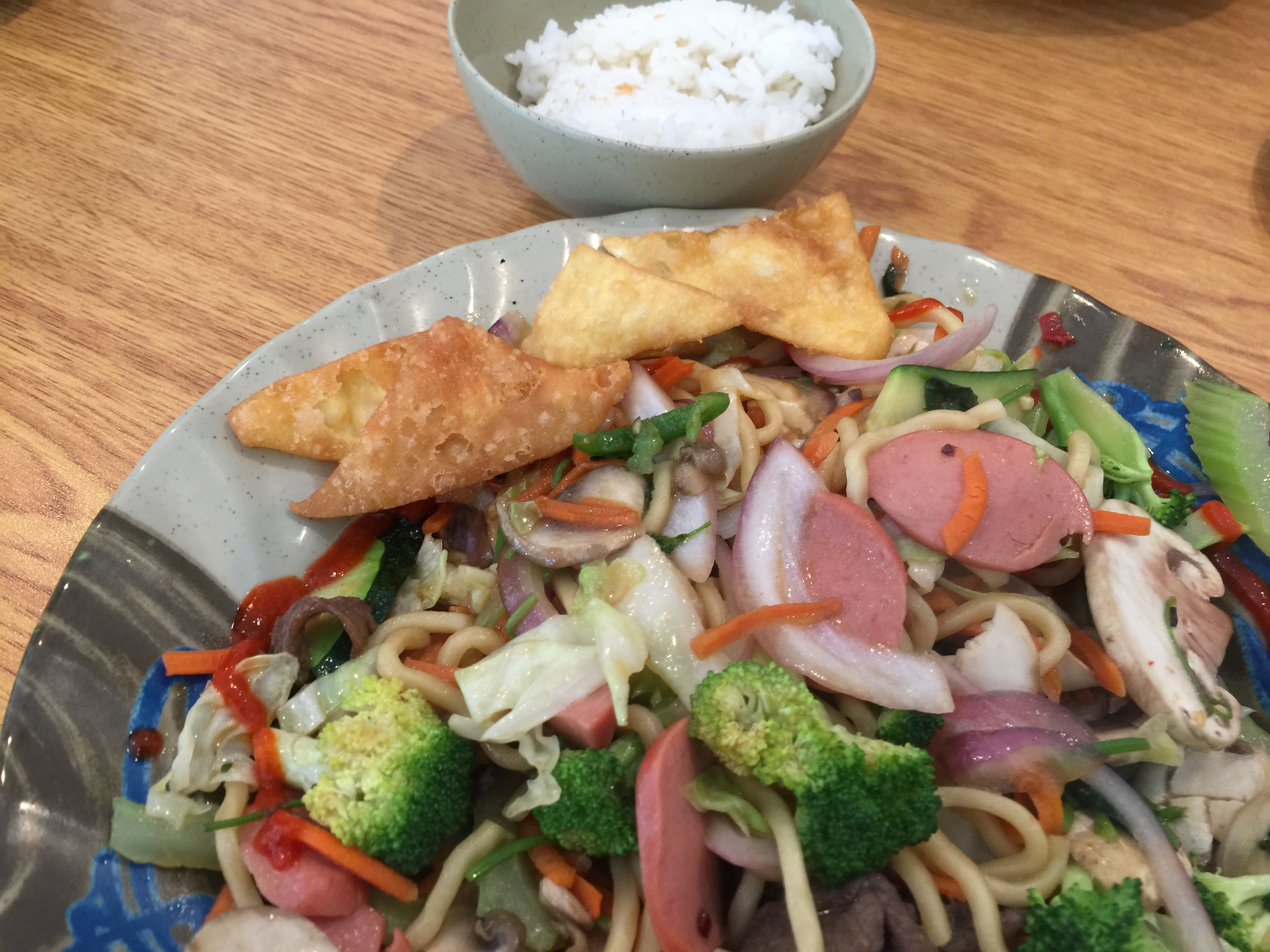 Normally when I go to our favorite Mongolian BBQ in Utah, I keep it strictly vegetarian but I thought I would try a few meats at this new place. They had beef, lamb, turkey sausage, and chicken. I chose a little beef and some turkey sausage and then a bunch of vegetables. They also had tofu which I tried. The turkey sausage and the tofu were not good. Both had a bad texture. Son and John raved about the lamb. All the vegetables were great. I think I will stick to vegetables next time!