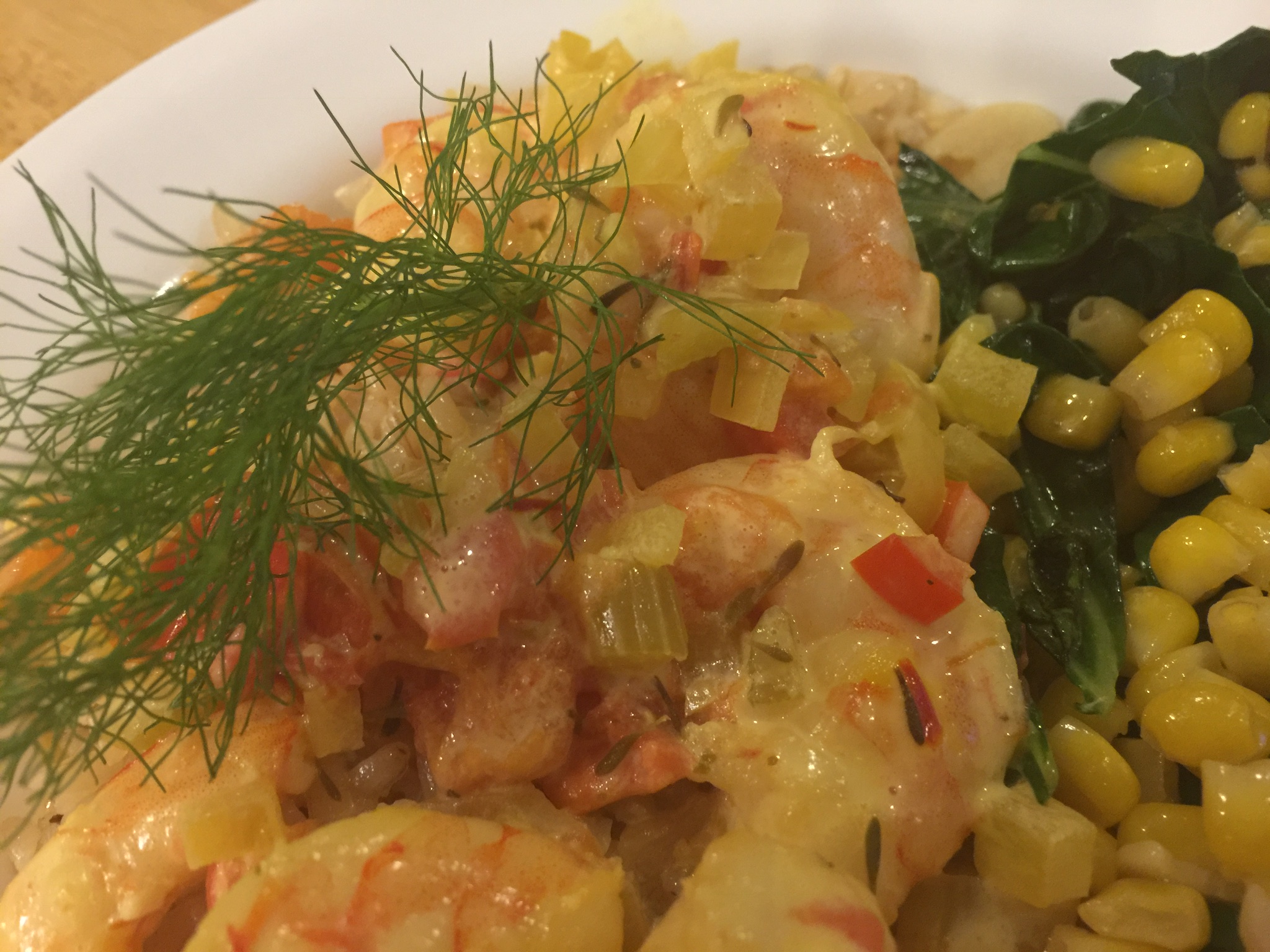 Having finished up our leftovers of this dish last night our daughter declared that it was like eating in a restaurant! That is high praise indeed since she rarely eats any of our food. Saffron shrimp with Pernod sauce has become a real favorite around here and we seem to be making it every week or two.